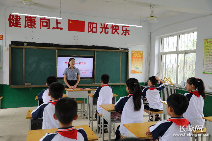 韩老师正在上《中朝英雄——杨春增》校本课程。杨春增学校供图