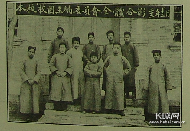 1932年,韩增丰(前排左三)在中学参加校园主编委员会的合影照片。韩增丰妹妹韩增盛供图