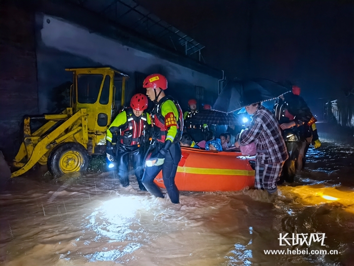 石家庄市消防救援支队在河南省安阳市魏城村救出100余名被困群众。
