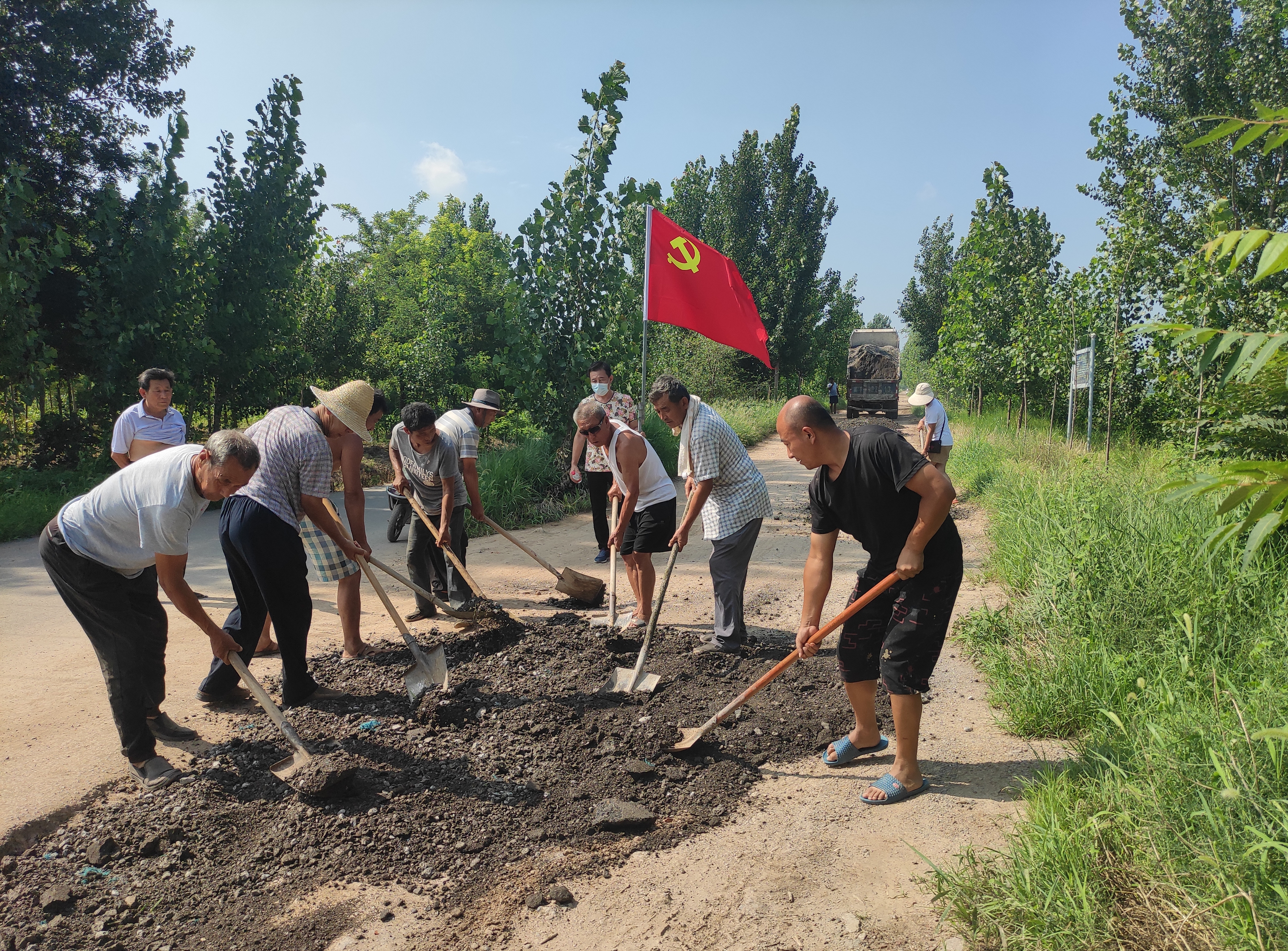 8月2日一大早,位于该县豆村镇阎五门村和刘五门村村西的滏东排河西大堤上,十多名党员挥舞着铁锹,在忙着填砂石料平整道路。“这条路是村民外出的必经之路,也是运送防汛物资的关键通道,在防汛关键时刻,我们党员要冲在前,为群众筑牢安全防线。”阎五门村党支部委员陈存福沙哑着嗓子说出了每个党员的心声。为充分激发党员的担当精神和责任意识,该县及时发出《关于在防汛工作中充分发挥基层党组织战斗堡垒作用和广大党员先锋模范作用的倡议书》,号召全体党员“带党徽、亮身份”,在防汛工作中冲在前、作表率,把党旗牢牢插在防汛第一线。依托“1+10”党员联系户制度,该县在防汛重点区域开展“党员联户”活动,组织党员做好政策宣传,引导群众积极投身防汛工作。同时,该县发动党员成立防汛救灾“突击队”230支,建立“党员责任岗”900余个,分片包干,24小时不间断开展上堤巡查,对出现的安全隐患及时排除。