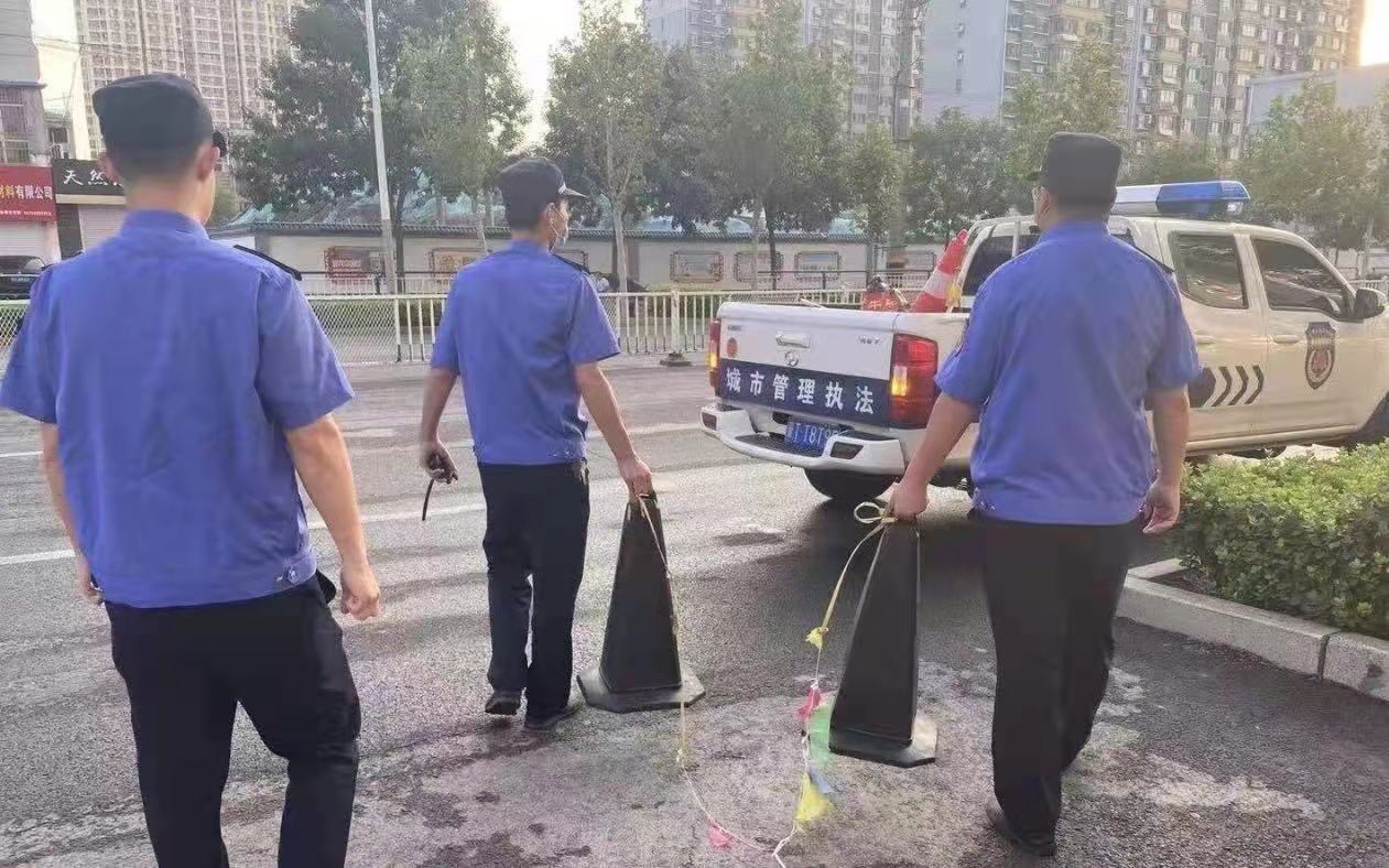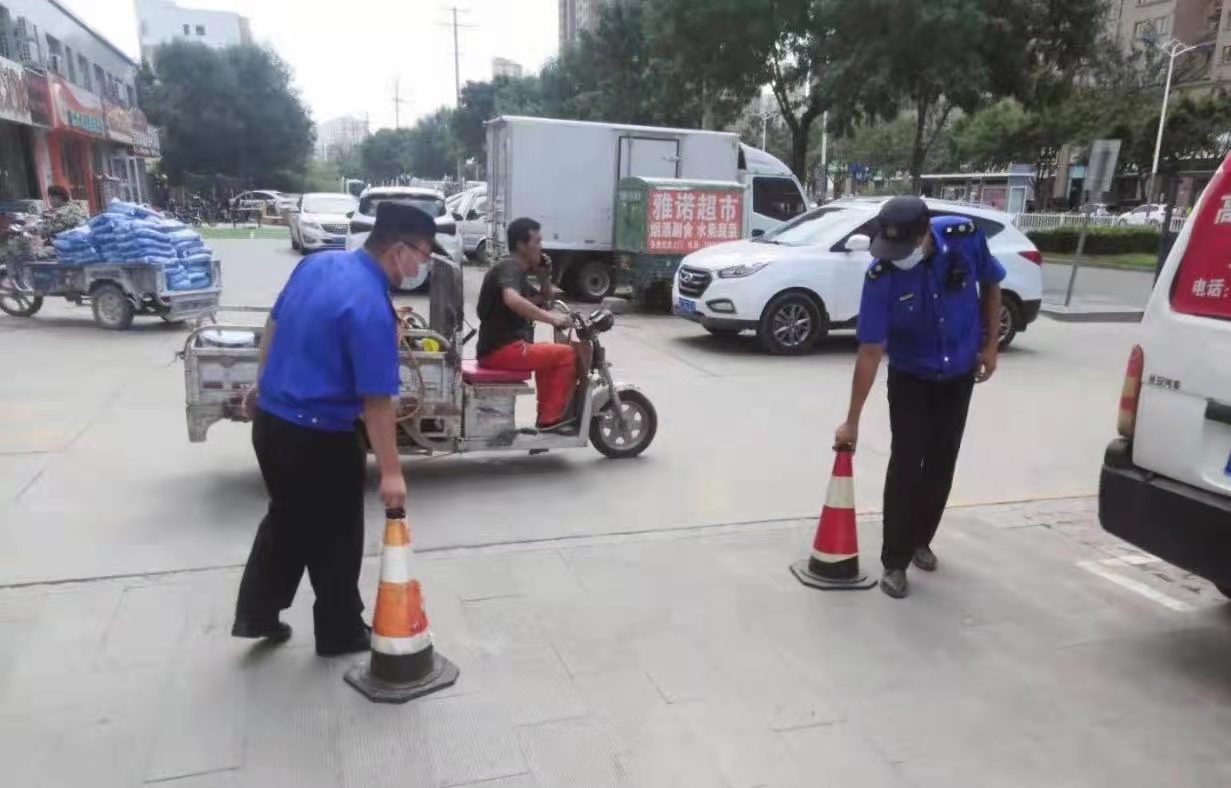 反光锥、隔离墩、停车牌、铁桶……记者走访主城区主干道发现,沿线不少临街商户为招揽生意、方便顾客停车,在店门口私自设置障碍物,并擅自占用公共场地、公共停车位,导致公共停车位紧张,既影响了市民出行安全,又损害了人民群众利益。专项整治中,执法人员认真贯彻落实市委、市政府和局党组工作部署,针对巡查过程中发现的私设障碍物行为,坚持“教育+引导”相结合,第一时间找到商户负责人,发放《致市民群众、沿街单位商户告知书》,耐心细致地讲解相关法律法规,引导违法行为人自觉履行法定义务、纠正违法行为,主动协助工作人员对违规设置的各类障碍物进行清理、拆除。对屡教不改私设各类障碍物的,执法队员坚决按照相关法规对其严肃处理。