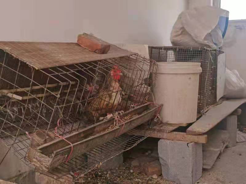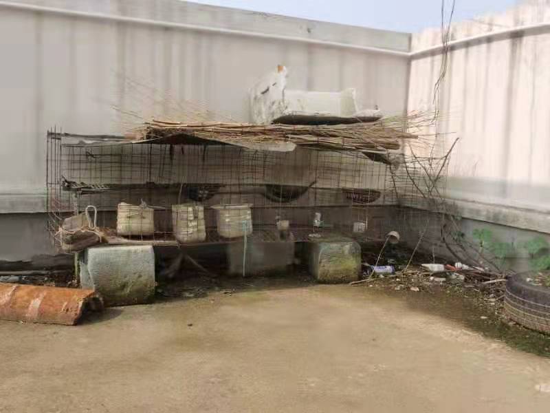 8月10日上午,记者跟随该小区3号楼3单元的业主来到楼顶,刚走到楼顶门口,一股恶臭迎面袭来,只见一个脏兮兮的鸡笼子摆在顶层楼道靠窗处,笼内有一只羽毛凌乱的公鸡,笼外则是一地鸡粪和杂物、垃圾。登上楼顶发现,上面有几个闲置的鸡笼和破损的铁丝网,笼下肮脏阴湿,仔细查看,楼顶边缘竟然还有死亡腐烂的鸡和老鼠。