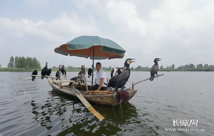 白洋淀上的渔民和鸬鹚。长城网记者 闫思宇 摄