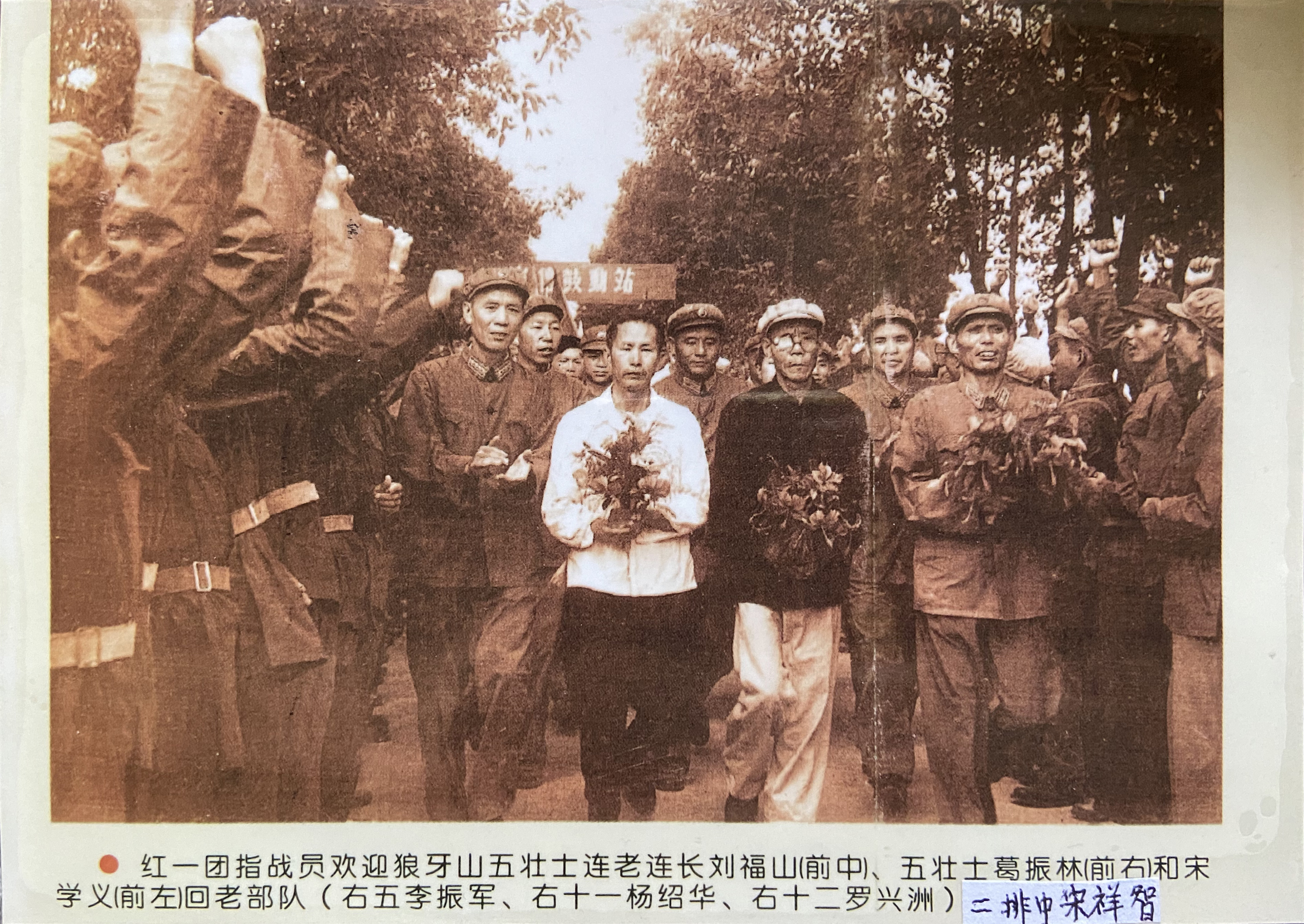 狼牙山五壮士连老连长刘福山(前中)葛振林(前右)宋学义(前左)。