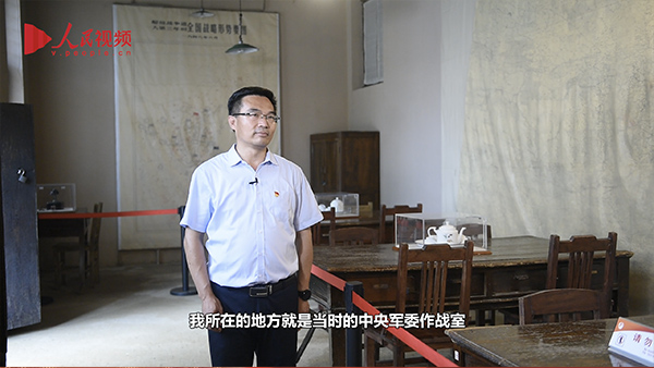 我们这个中央军委作战室,也是党中央指挥三大战役的总指挥部,一共四间小屋,三张桌子,两幅地图,还有一部电话。周恩来曾经说过“我们在世界上最小的指挥部,指挥了世界上最大的解放战争。一不发枪,二不发粮,三不发人,就是靠着天天往前线发电报,就打败了国民党的几百万军队。”