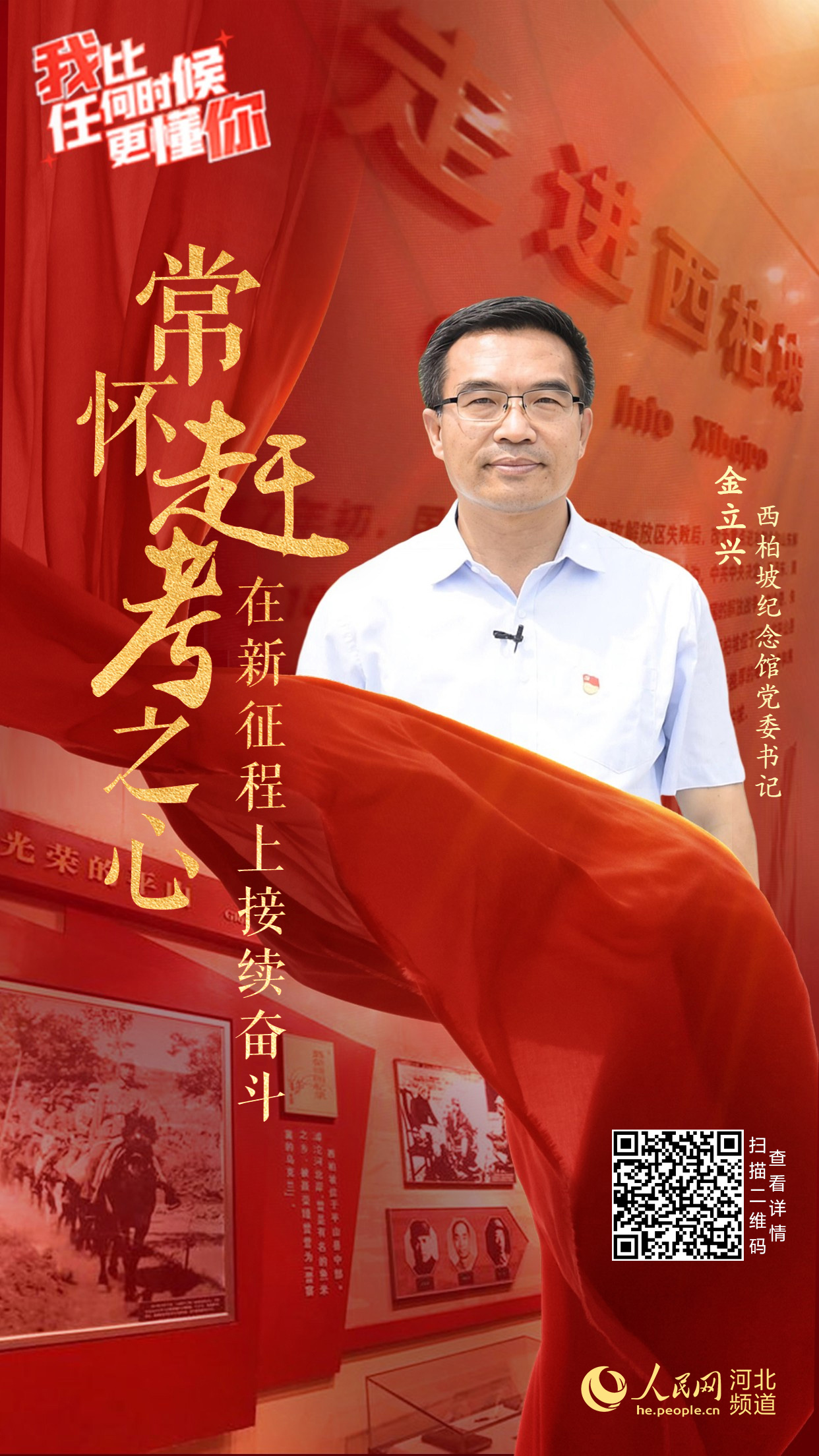 大家好,我是西柏坡纪念馆党委书记金立兴,我现在是在革命圣地西柏坡。在中国共产党百年华诞的伟大日子里,与大家一起回顾、学习西柏坡的历史、西柏坡精神,感到非常高兴。