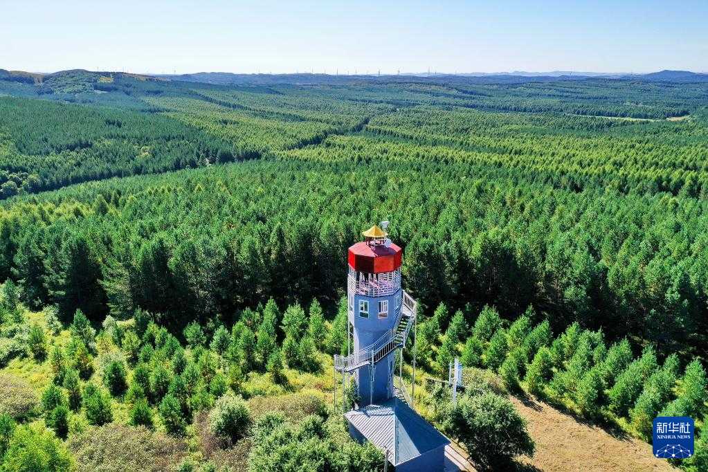 塞罕坝机械林场内的望海楼(8月23日摄,无人机照片)。