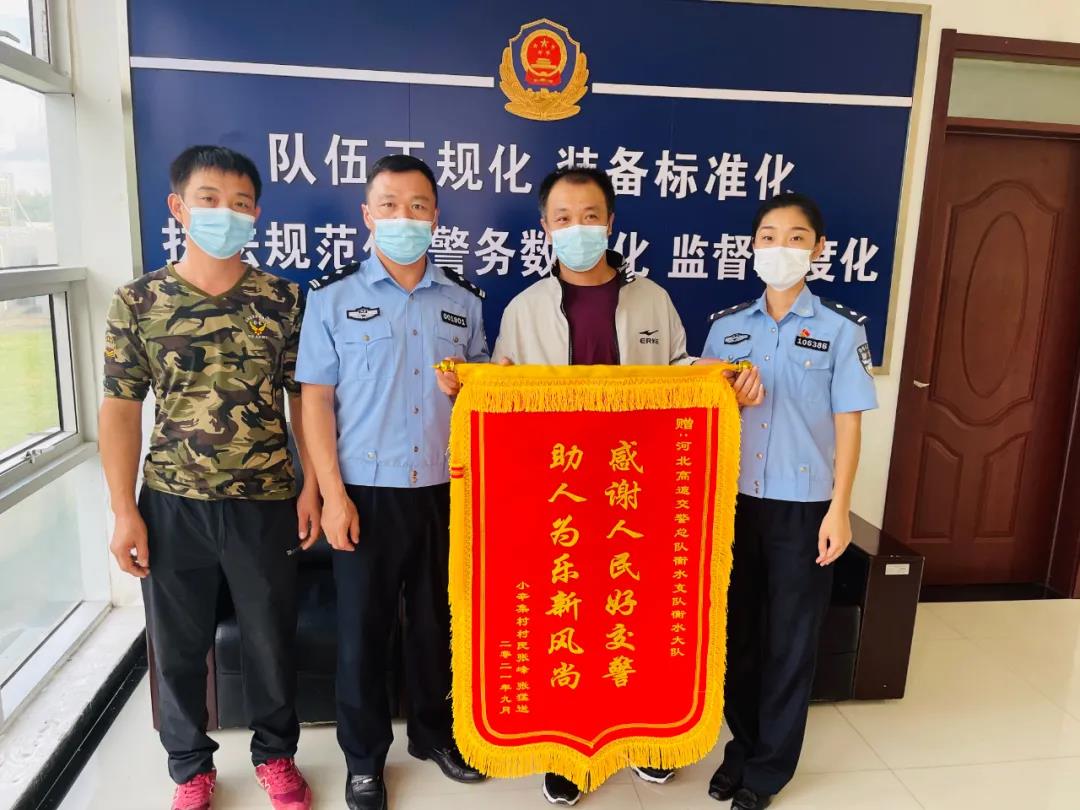 民警耐心询问了老人家庭住址和家人姓名,及时联系上其家人。上午8时,小辛集村村支书和老人儿女将老人平安接回,并于当天下午专程送来锦旗:“感谢人民好交警 助人为乐新风尚”。