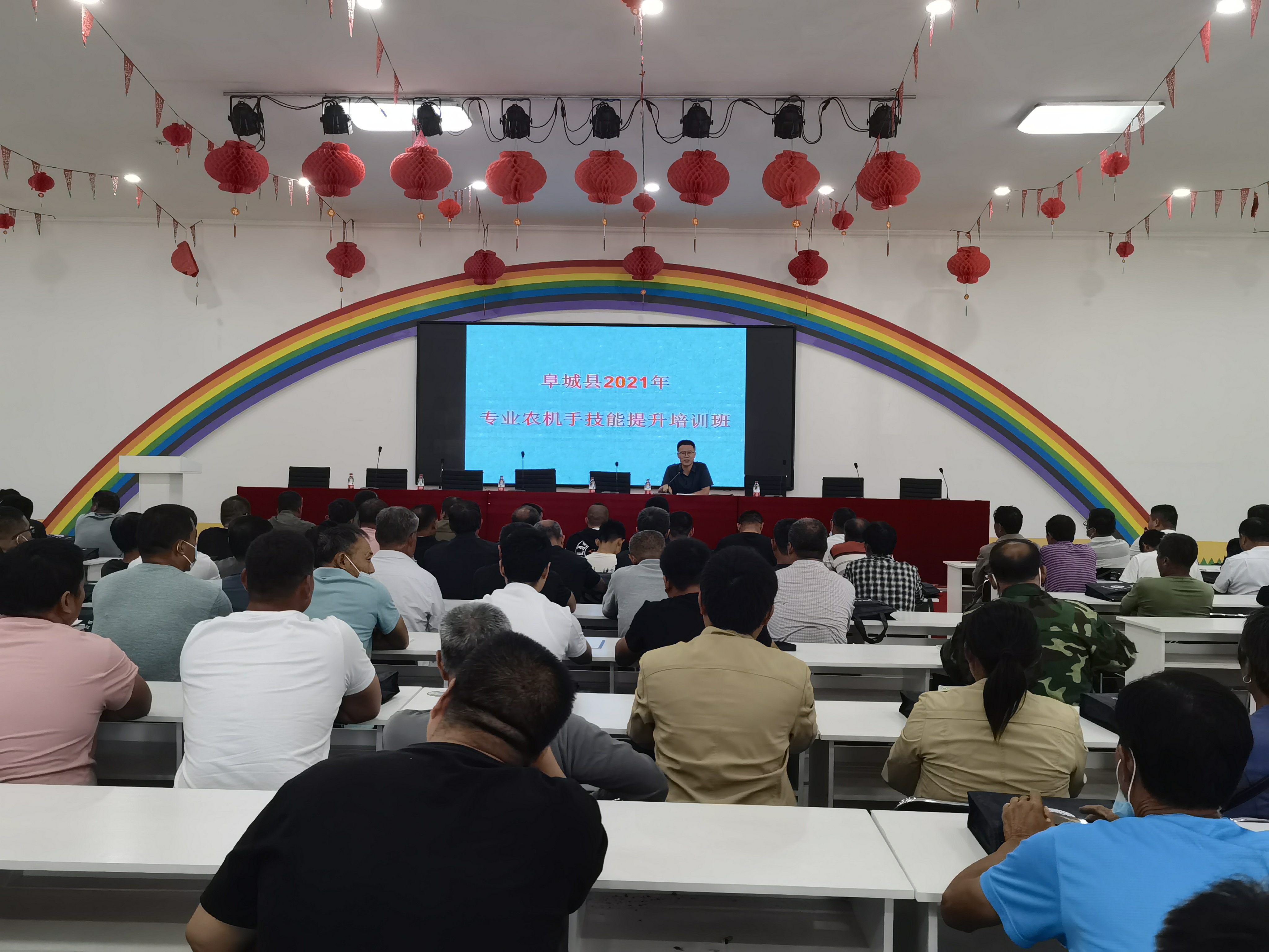 9月9日,阜城县农业农村局举办专业农机手技能提升培训班,为全县5个合作社的150名农机手“充电”,增强农机手安全生产意识,熟练掌握运用先进农业机械设备,提升操作水平和作业质量,为“三秋”农机安全作业奠定基础。