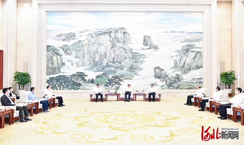 9月16日至18日,十一届全国政协副主席、中国国际跨国公司促进会会长郑万通率队来我省调研。16日下午,省委书记、省人大常委会主任王东峰,省委副书记、省长许勤,省政协主席叶冬松在石家庄与郑万通一行举行座谈。河北日报记者赵威摄