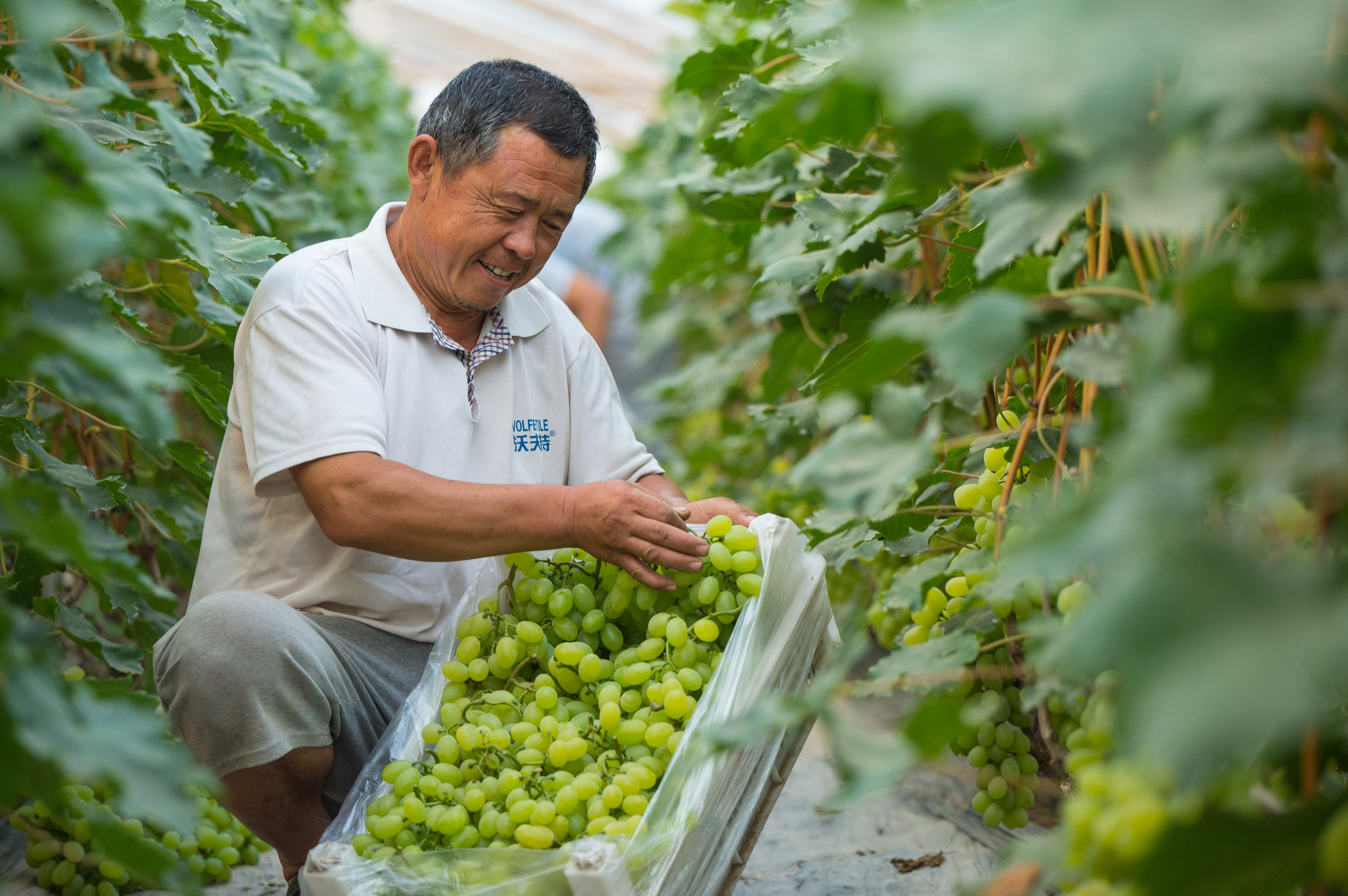 农业结构调整带来新景象:全县高油酸花生种植面积5万亩,单产400公斤,总产2000万公斤;葡萄种植面积2千亩,亩产2000公斤,总产400万公斤……