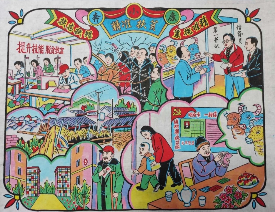 这种斜方形式的武强年画被称为“斗方”或“月光”,多绘吉祥人物、花卉等图案。“斗方”是供门内影壁墙上张贴或糊灯悬挂用,“月光”贴于窗户两侧的墙上。