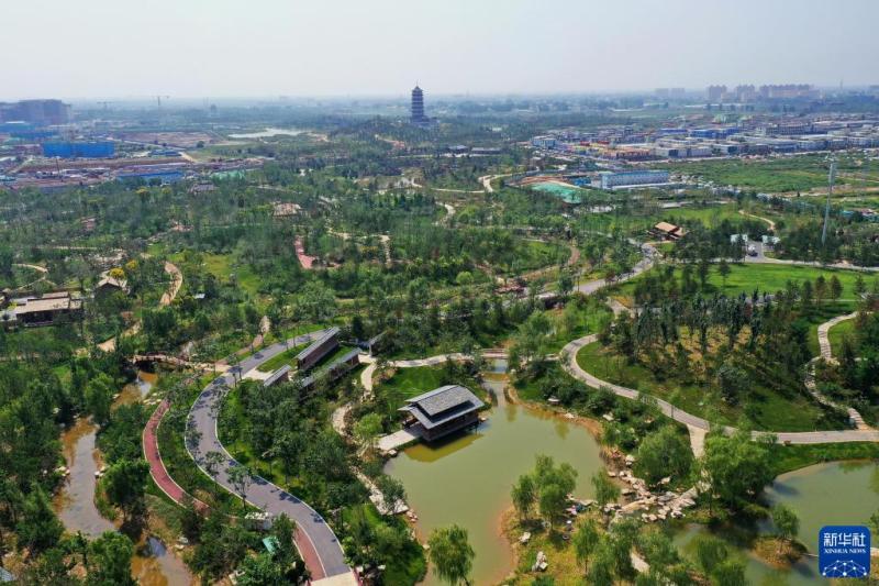 这是雄安新区悦容公园北苑内的景色(9月1日摄,无人机照片)。新华社记者 牟宇 摄