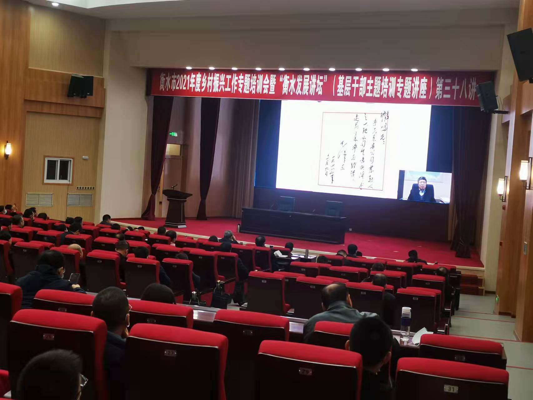 10月22日,我市举办2021年度乡村振兴工作专题培训会暨衡水发展讲坛(基层干部主题培训专题讲座)第三十八讲,邀请中央党校国际和港澳培训中心合作开发处处长、法学博士董明发作辅导报告。