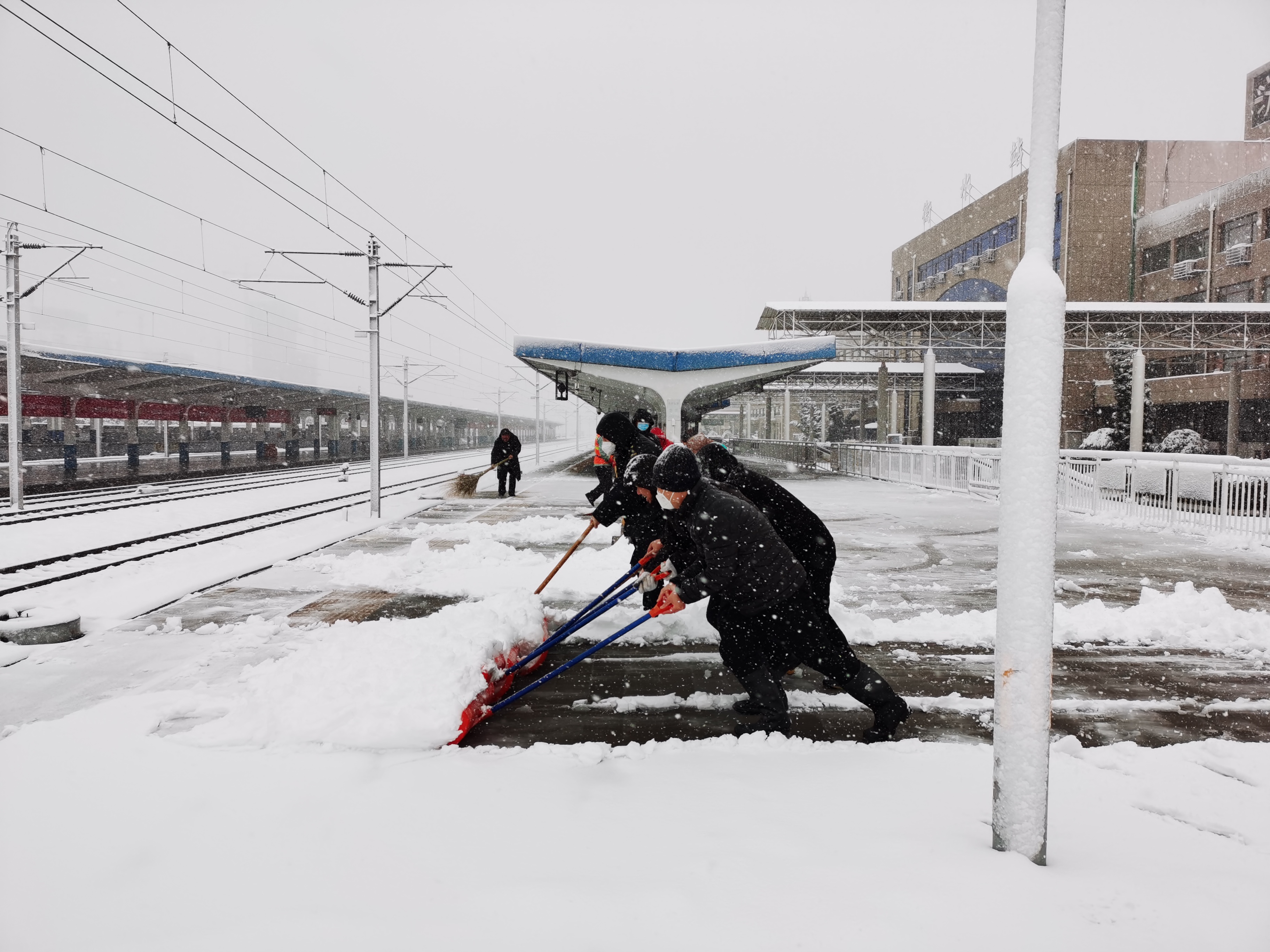 据了解,降雪后,衡水车务段党政主要领导马上到达安全生产调度指挥中心指挥各站除雪。各站组织干部职工339人利用风力除雪机、钩铲、喷灯、融雪剂等设备进行除雪。客运岗位职工及时清扫站台积雪,防止旅客滑倒摔伤。