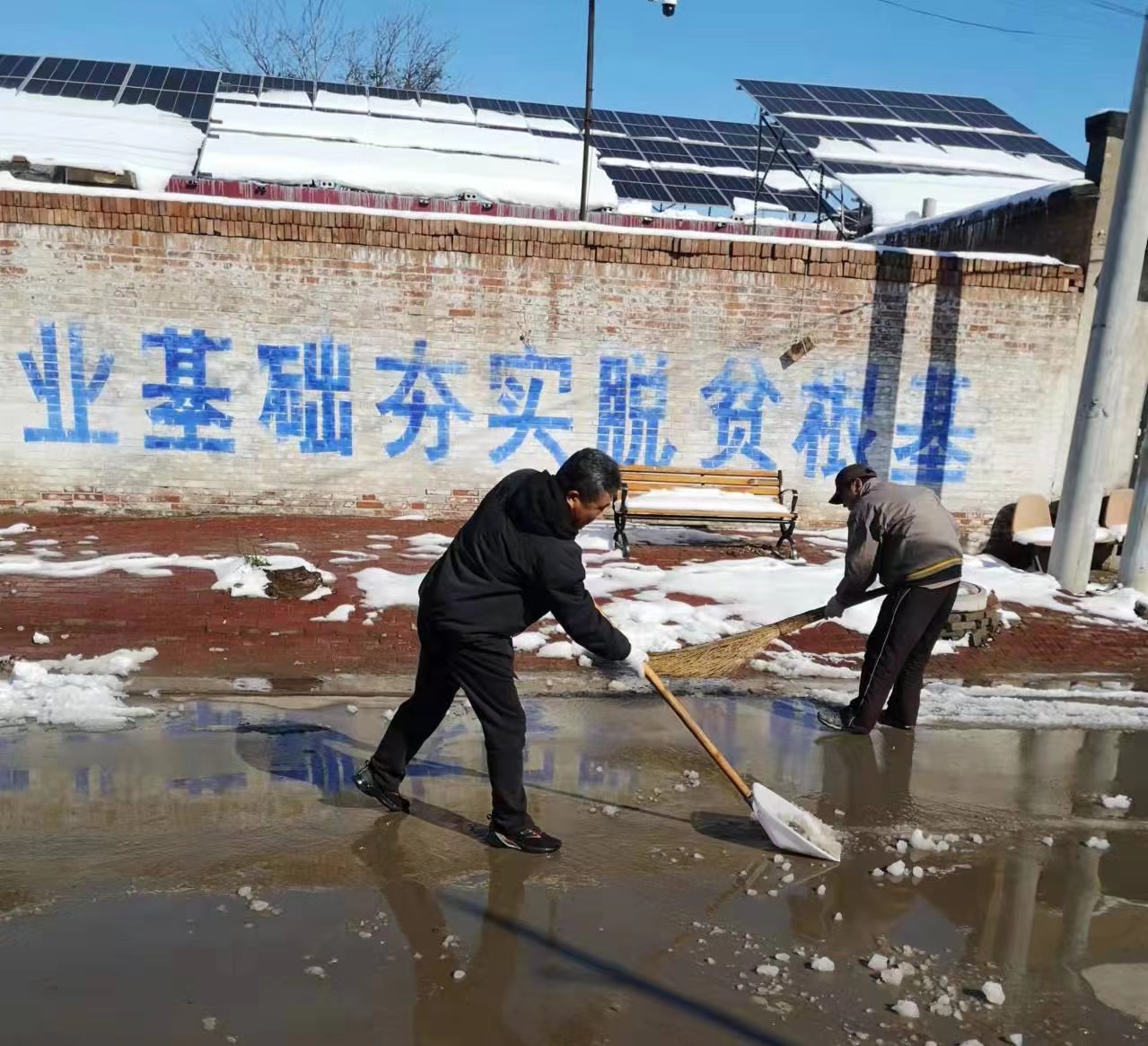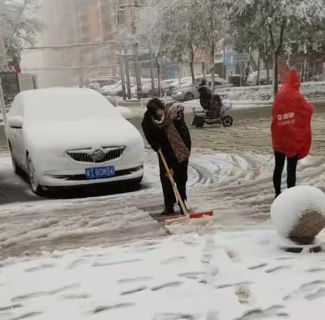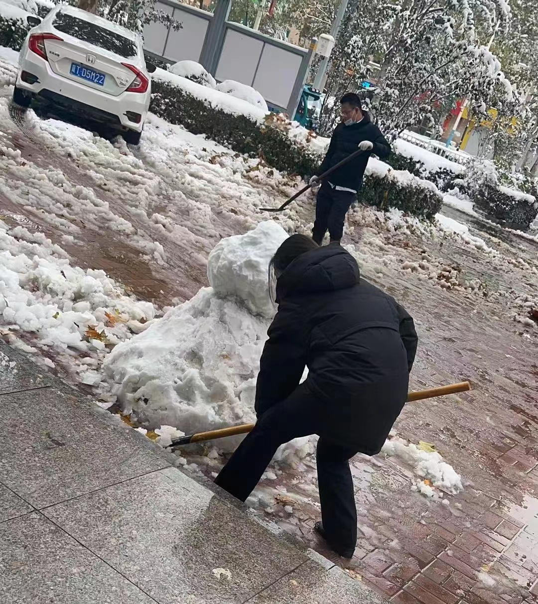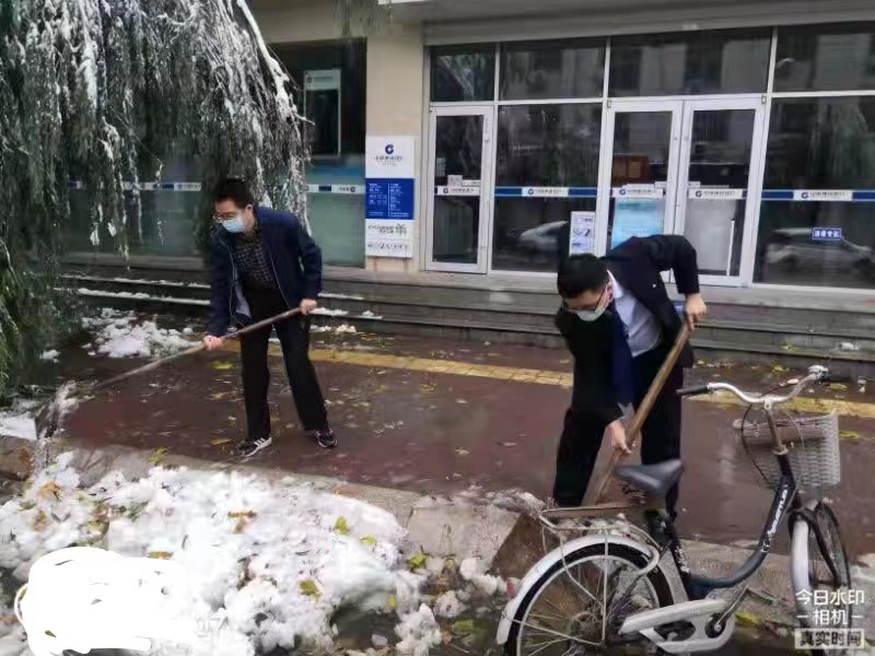 辛丑立冬,天降瑞雪。为保障行人和车辆的安全出行,给前来办理业务的客户提供方便,建行衡水分行员工充分发挥“奉献、友爱、互助、进步”的志愿服务精神,紧抓时间,顶着风雪,手拿铁锹,挥舞扫把对网点门口及附近路面、帮扶村路面的积雪和结冰进行清扫。大家齐心协力,配合默契,忙碌的身影构成了一道亮丽的风景线。