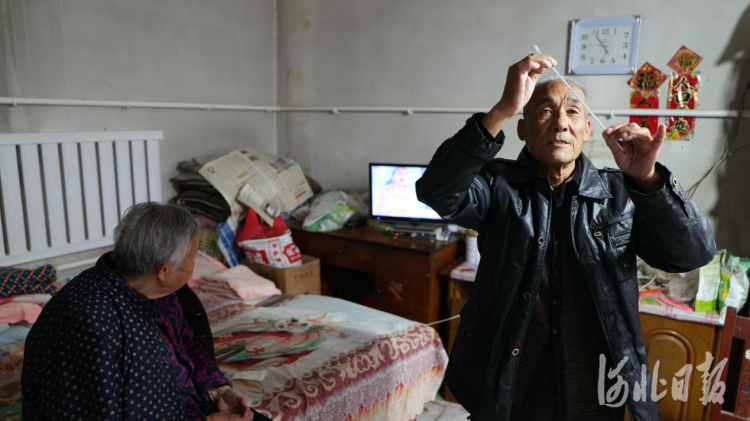 11月3日,安新县安新镇南刘庄村村民董长虹查看室内温度计,已达到20℃。 河北日报记者李佳泽摄