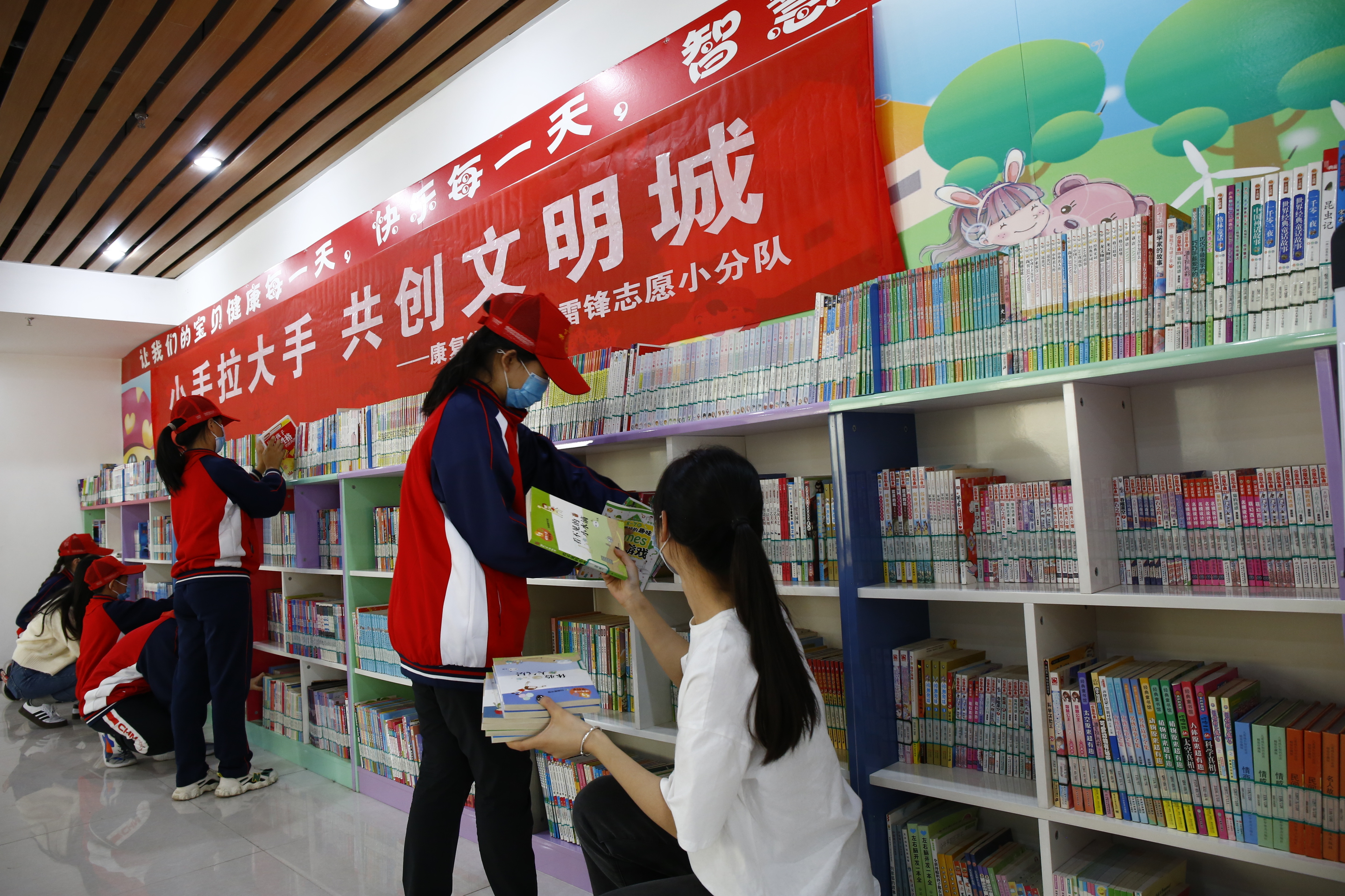 康复街小学学雷锋志愿小分队在图书馆开展志愿服务活动。
