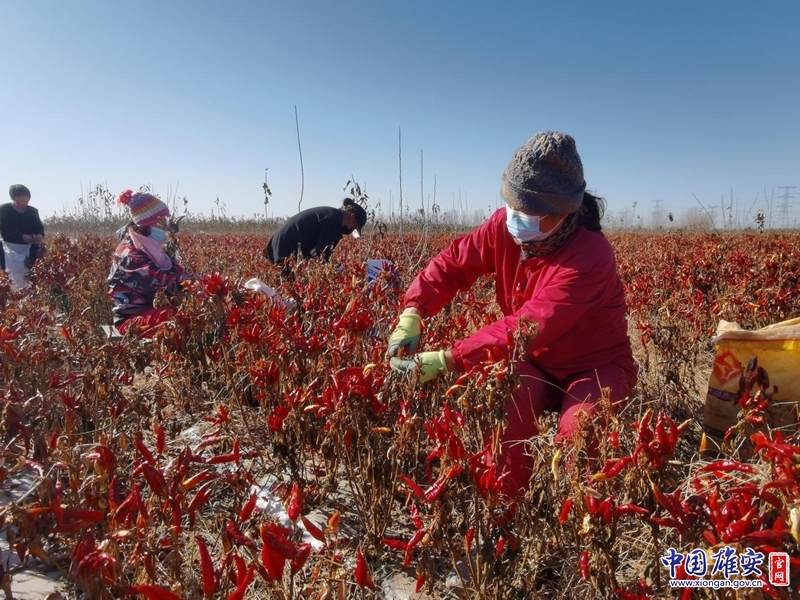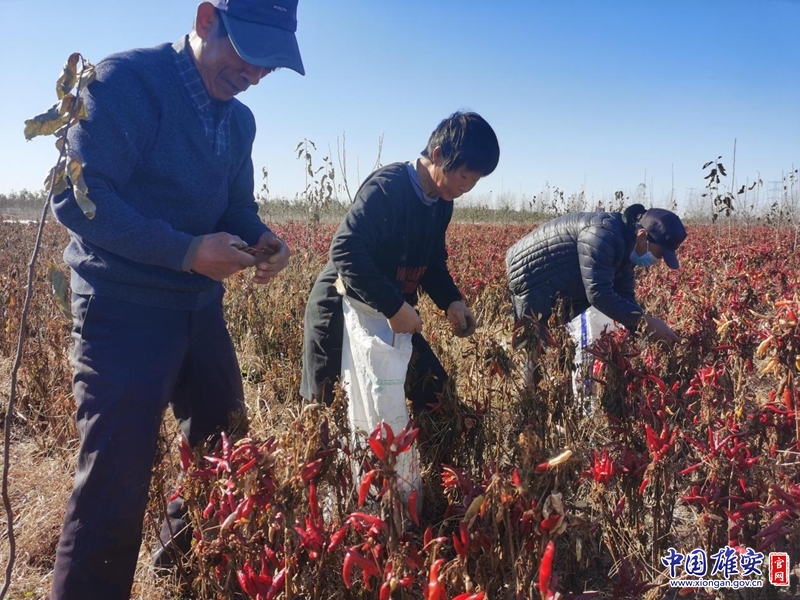 农户正在试验田中采摘辣椒。中国雄安官网封俊龙 摄