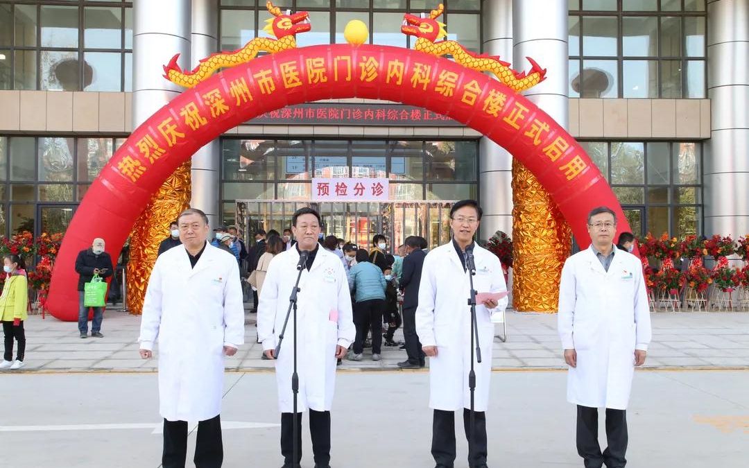 该院党委书记张占学代表院党委和全院干部职工向所有关心支持医院医疗卫生事业发展的各级领导和社会各界,向参与工程建设、付出心血和汗水的同志们表示衷心的感谢。张占学表示, 门诊内科综合楼的正式启用,这是医院发展史上的一件大事,是增进群众健康福祉的一件喜事,标志着医院综合实力和硬件建设迈上了一个新的台阶,见证着医院的医疗事业发展进入到一个崭新的阶段,更是全院向建党一百周年献上的一份厚礼。希望全院干部职工以此为新的起点,牢固树立“以院为家”的主人翁意识,携手并肩、齐心协力,努力把医院我们共同的“家”建设好、发展好、维护好。以更加饱满的工作热情和更加务实的工作举措,创新实干、奋力争先,紧紧围绕“医院发展、创新服务”两大主题,着力加强学科建设,提升服务水平,不断增强人民群众的获得感、幸福感,全面打造现代区域高质量医院,全力向着创建三级医院迈进。为续写医院高质量发展新篇章,建设“健康深州”做出新的更大贡献。
