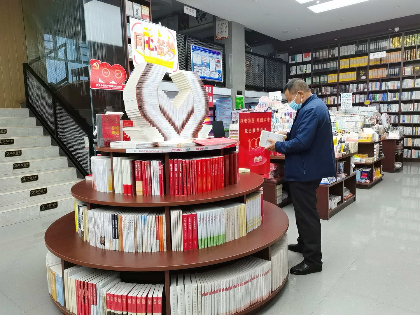 书店内,醒目的红色主题陈列牌和一本本书籍整齐有序地放置在“三部简史”专柜前,几名读者认真翻阅着新展出的党史书籍。无论是历史读物还是人物传记、党建图本等,都以全新视角引领读者重温党的光辉岁月。枣强县新华书店紧密结合党史学习教育,充分发挥卖场陈列优势,设置“三部简史”展示专区,利用码堆造型、海报陈列等形式对图书进行重点推介,为广大群众阅读学习创造良好条件。同时,利用微信公众号、朋友圈等渠道图文并茂地进行线上推广,并成立工作专班,针对机关、乡镇、学校、企业等机关单位全力做好征订、配书、开票、核对、配送工作,打造送书、送学、送服务“一条龙”服务,为深入开展党史学习教育提供保障。