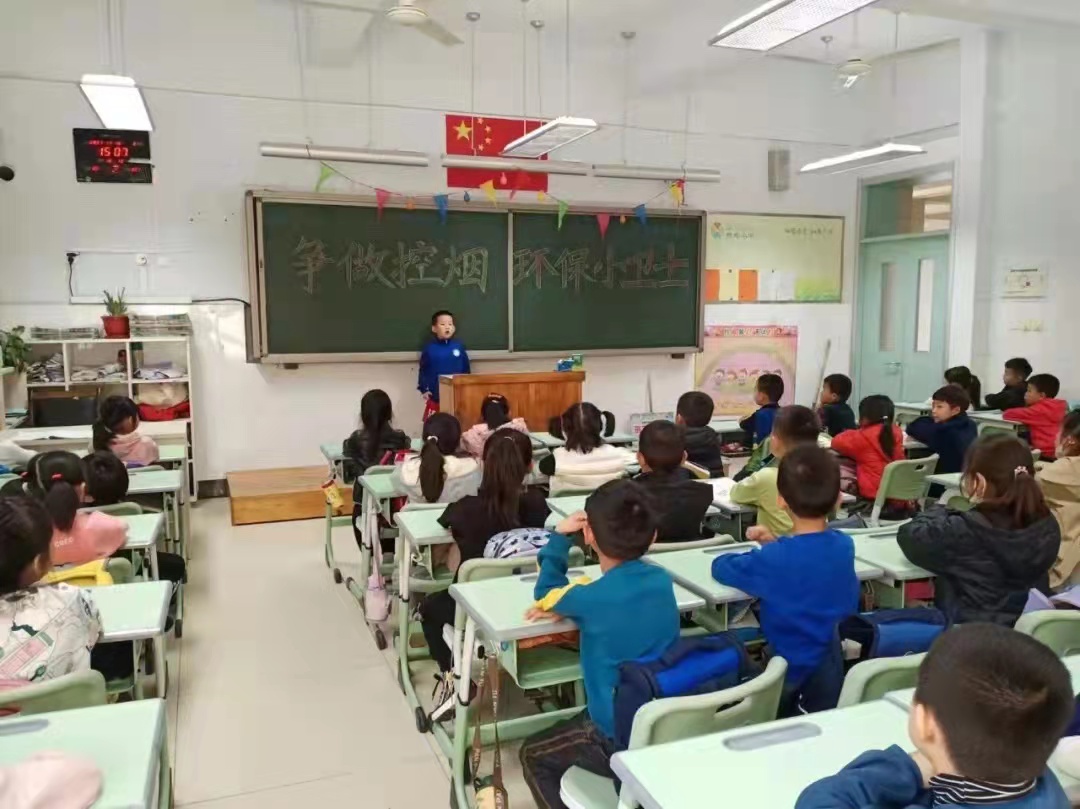 “以前,我爷爷经常抽烟。后来在我的劝说下,爷爷抽烟次数变少了。今后我要劝导更多人讲文明,少抽烟,不乱扔烟头。”三年级五班的学生张雅杰正在讲述她和控烟的故事。