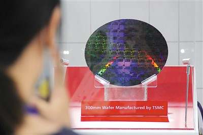 图为今年六月九日,南京国际半导体博览会现场,台积电展台展品吸引观众。王路宪摄(人民视觉)