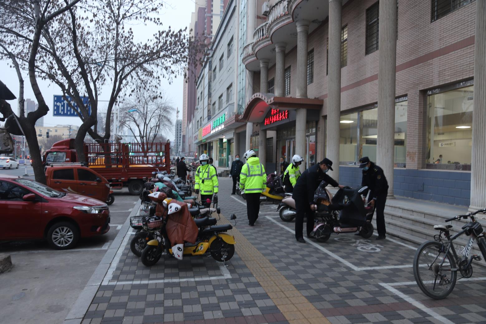 12月7日,我市交警部门联合市城市管理综合执法局,在主城区范围内开展“清街”行动,治理商业大街、主干道及“三圈”乱点部位的机动车停车秩序、非机动车和行人的七类不文明行为。