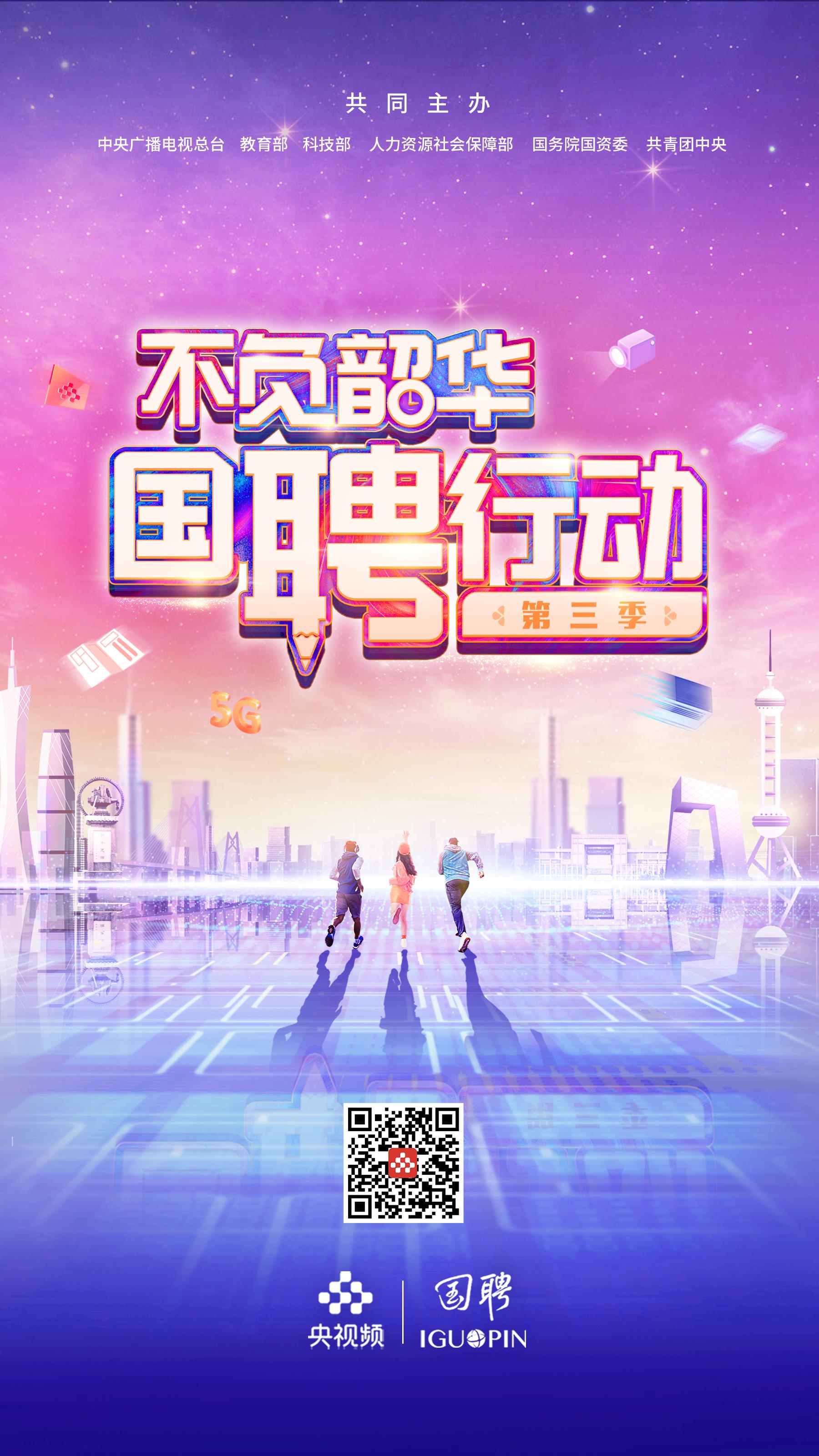 12月8日,“国聘行动”第三季——“不负韶华 国聘行动”大型融媒体招聘活动正式启动。活动由中央广播电视总台联合教育部、科技部、人社部、国资委、共青团中央共同发起,央视频携手国投人力共同主办。