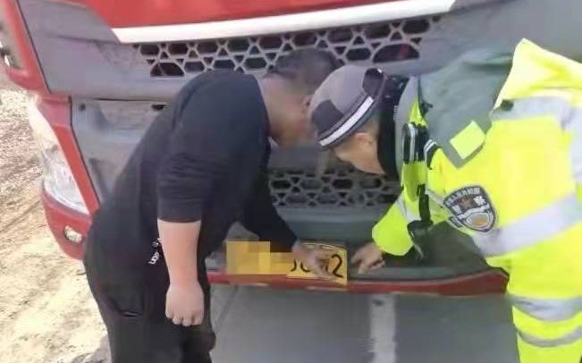 当天下午2时左右,城区中队交警正在执勤时,接到指挥中心的消息称,近日一直追踪的一辆红色重型仓栅式货车再次出现在市区。随后,执勤交警迅速对该车辆进行追踪,最后在深杨线拦停。该驾驶人下车后拒不承认使用了变造的机动车号牌,并同妻子一起将作案工具藏了起来。交警对他们普及道路交通安全法,耐心进行询问,该驾驶人最终承认了自己的行为,并将粘贴的数字“2”号牌交了出来。