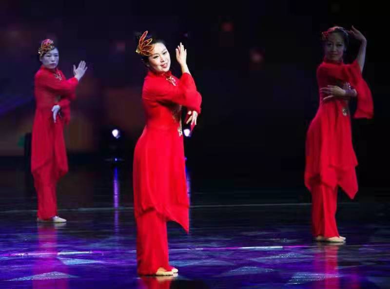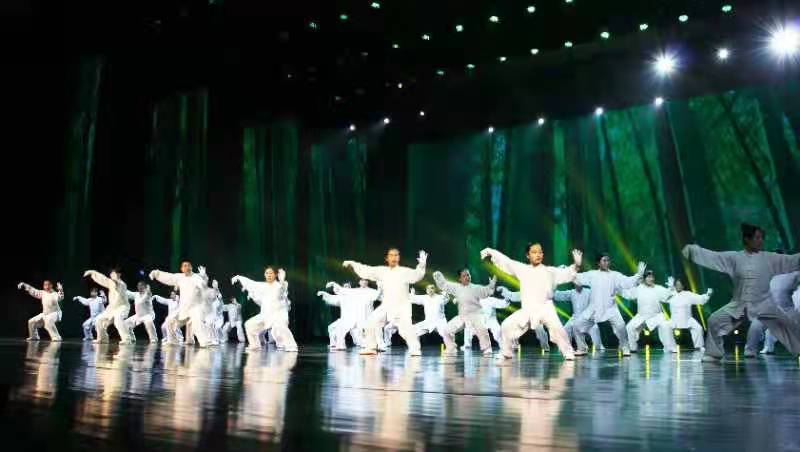 演出前,初心社工负责人张兵首先从社区养老、社区文化两个方面为观众带来了演讲《社工来了》。随后,演出在气势磅礴的大型太极拳表演中拉开帷幕,太极音乐的快慢起伏,全体表演者挥动臂膀,或动如行云流水,宛若白浪波涛,或静如山冈苍松,像是沉寂森林,一招一式转换之间,无不展示着太极拳的魅力。沁园社区居民表演的大型朗诵《毛泽东诗词联读》,雄沉壮阔、饱含深情,博得了观众阵阵掌声。