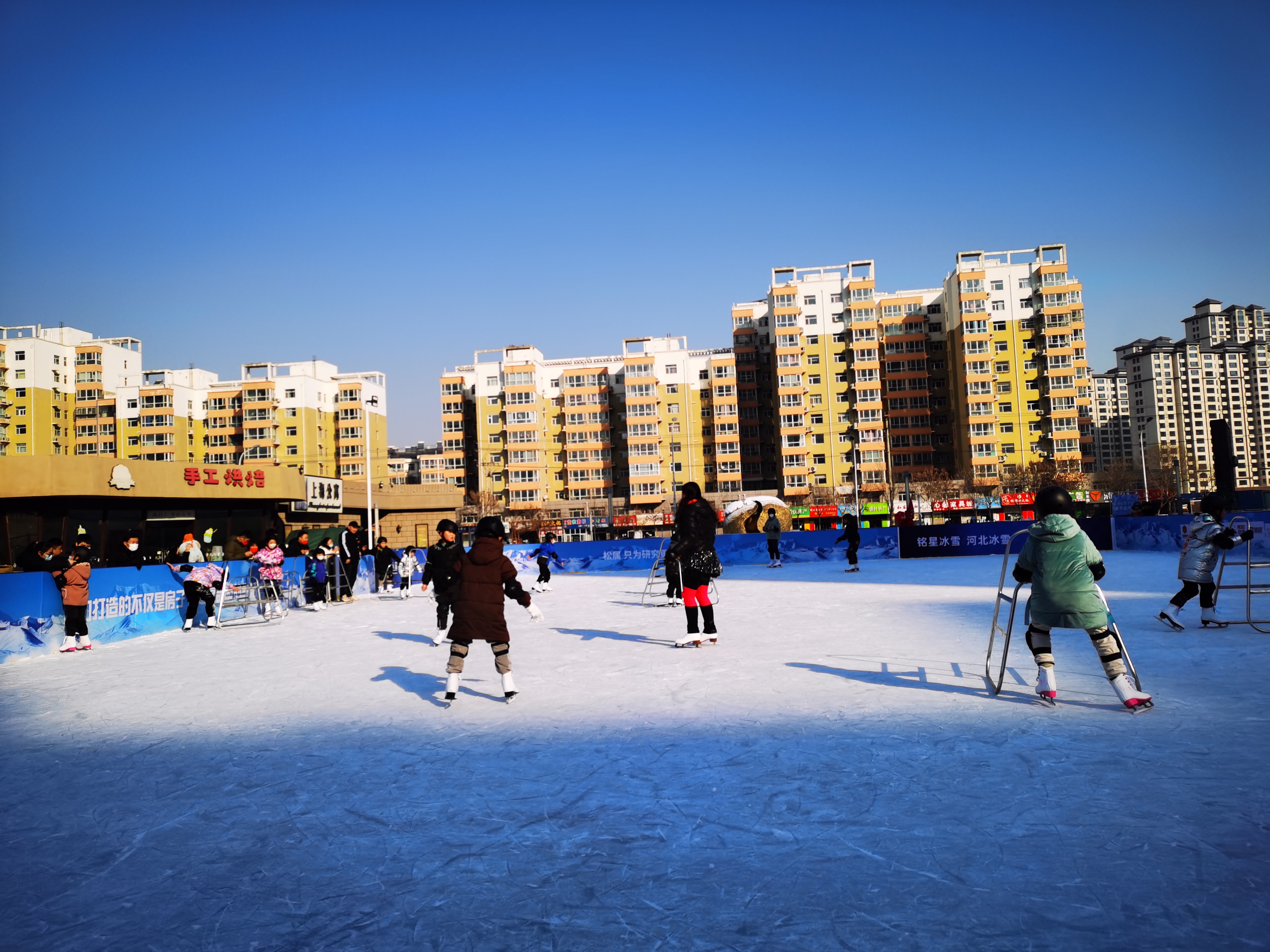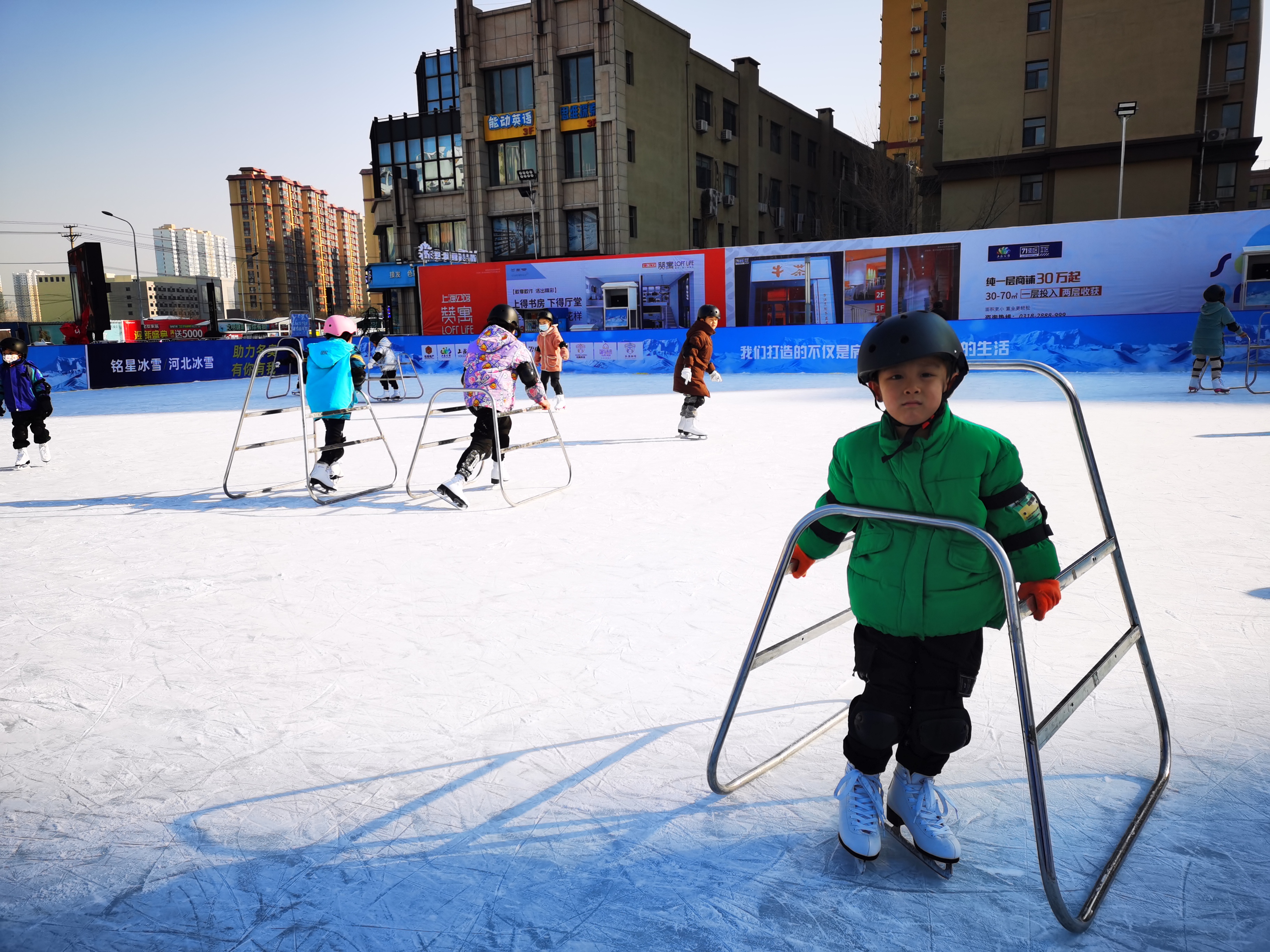 眼下正值“二九”,天寒地冻,但随着北京冬奥会临近,市民参与冰雪运动的热情越来越高涨。我市开设的冰雪运动项目,吸引了众多市民,也给原本清冷的冬季带来了生机与活力。这个元旦假期,上海公馆·影像广场内热闹非凡,一眼望去,场地内都是大人陪孩子运动的身影。这里既有真冰又有真雪,是衡水人家门口的冰雪乐园。虽然气温很低,但阻挡不住人们的脚步,不少市民“全家总动员”,一边欣赏冰天雪地的冬日美景,一边体验惊险刺激的冰上运动。许多孩子第一次踏上滑板,在家长呵护下小心翼翼开启一场冰雪之旅,场上不时传来“哎呀呀”的惊呼声和“扑通通”的跌倒声,但更多的是欢快的笑声和赞美声。大家在凛冽的寒风中尽情释放着自我,也享受着冬季这份独有的激情与欢乐。