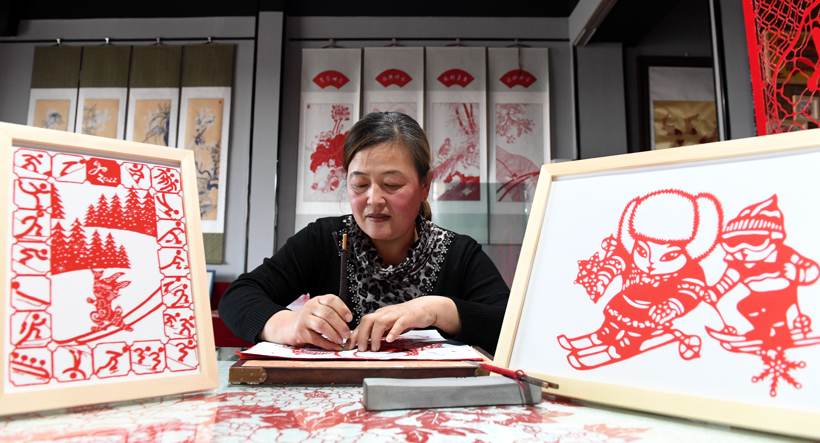 日前,阜城县剪纸艺人、河北省非遗文化传承人尤金水和爱人王淑芳一起创作完成《喜迎冬奥》等系列剪纸作品,表达对北京冬奥会的热烈期盼。
