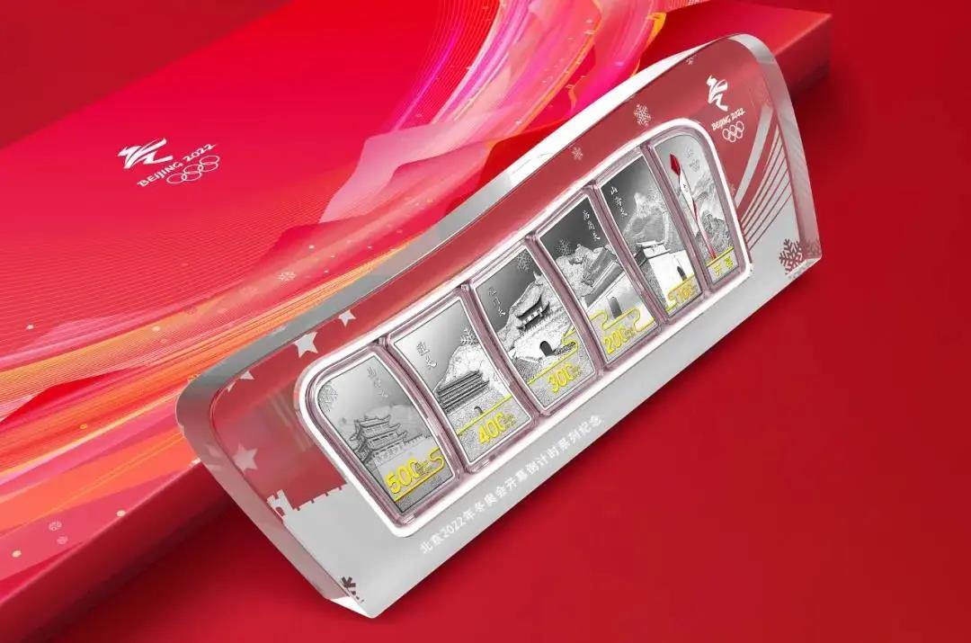 北京2022年冬奥会开幕倒计时系列金银条产品从倒计时500天开始陆续上市,历经倒计时500天、400天、300天、200天、100天,直至开幕,共12款(金、银条各6款)。集齐全套6枚金条或6枚银条,可组合成北京冬奥会开幕式场馆——国家体育场的剪影造型,这也为冬奥会开幕倒计时系列产品赋予了更多一重意义。