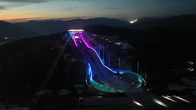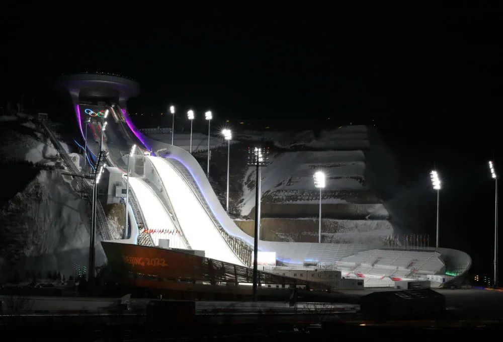 ▲张家口赛区国家跳台滑雪中心夜景(2021年12月31日摄)。新华社记者 杨世尧摄