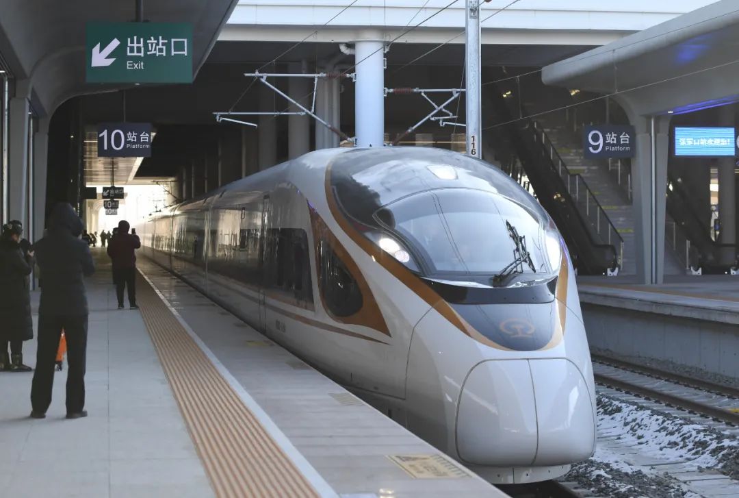 ▲列车驶入京张高铁张家口站。新华社记者 牟宇摄