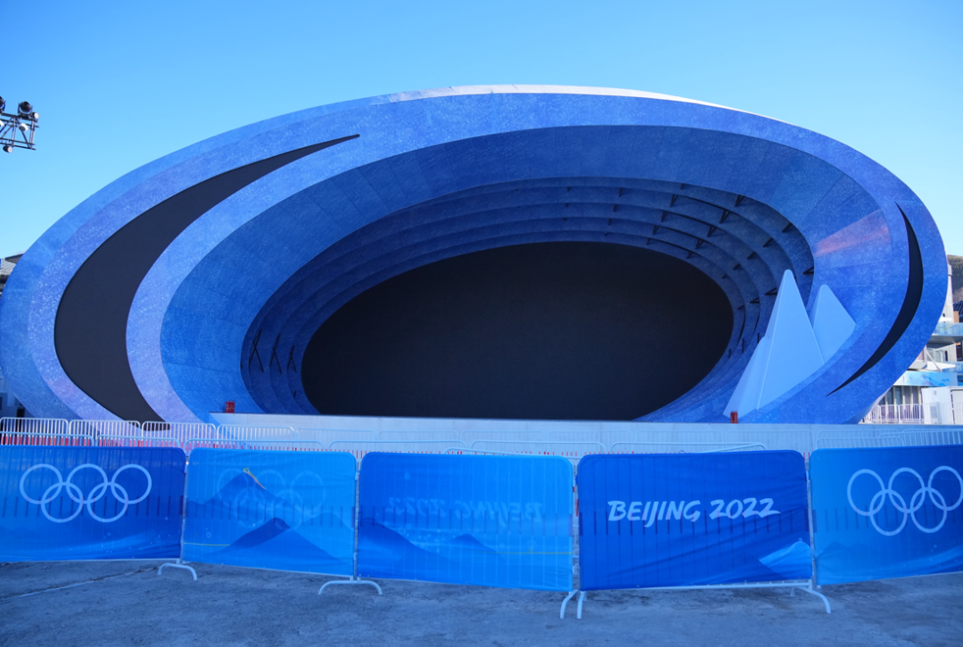 ▲这是2021年12月28日拍摄的张家口奥林匹克颁奖广场内已落成的颁奖舞台。新华社记者 杨世尧摄