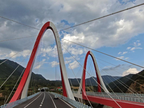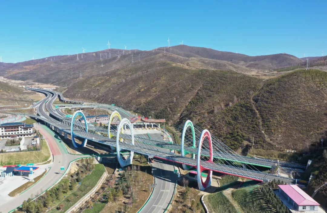 ▲进入延崇高速河北段主线,迎冬奥氛围扑面而来。图为“奥运之门”——杏林堡大桥。(河北省交通运输厅供图)