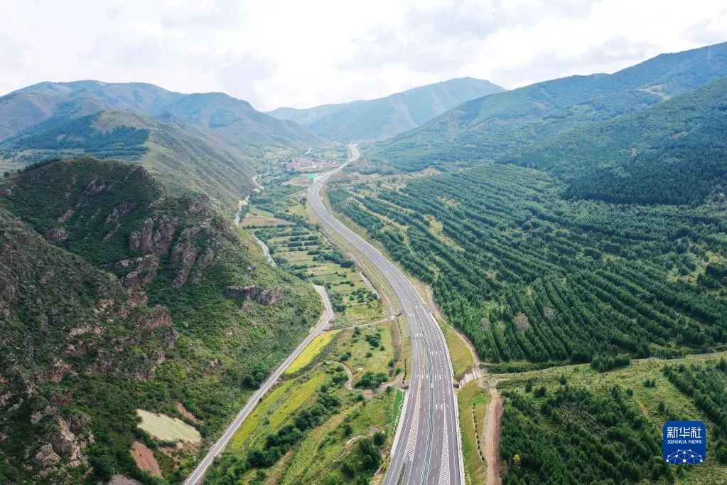 ▲这是2021年8月31日拍摄的延崇高速河北段延伸工程部分路段(无人机照片)。新华社发(武殿森 摄)