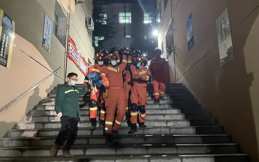 最后一名被困人员救出后被送往医院救治。图片由现场人员提供