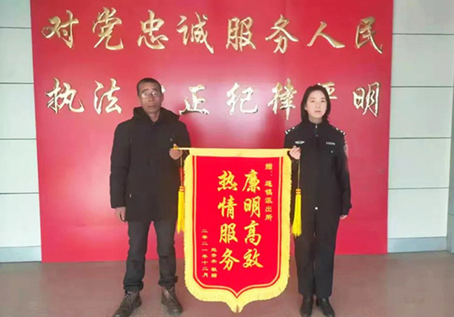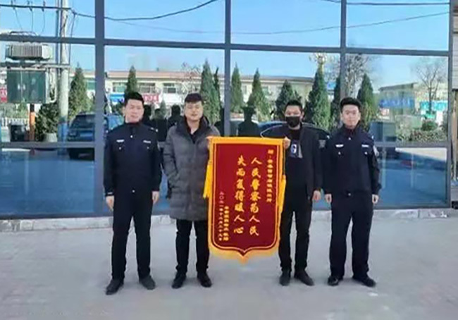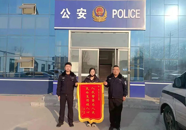 2022年1月,景州派出所仅用三小时的时间将宋女士丢失的手机找回。宋女士向民警赠送了一面写有“人民警察为人民,失而复得暖人心”的锦旗。景县融媒体中心供图