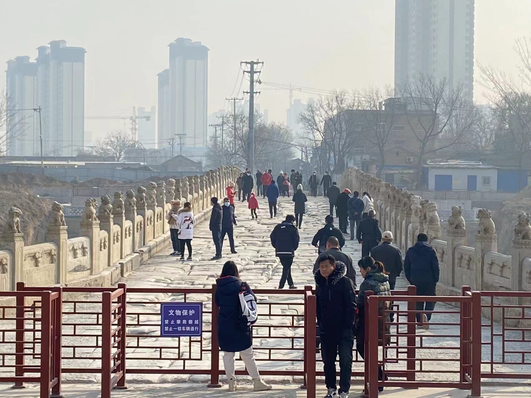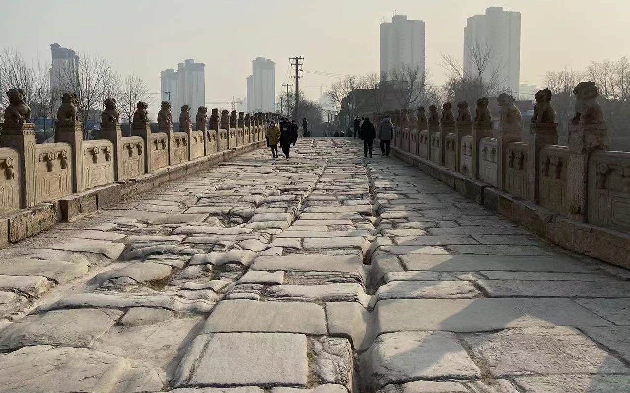 1月15日,记者来到安济桥,只见宽大的青石桥面、萌态可鞠的石狮子、尘封百年的老车辙重现天日。
