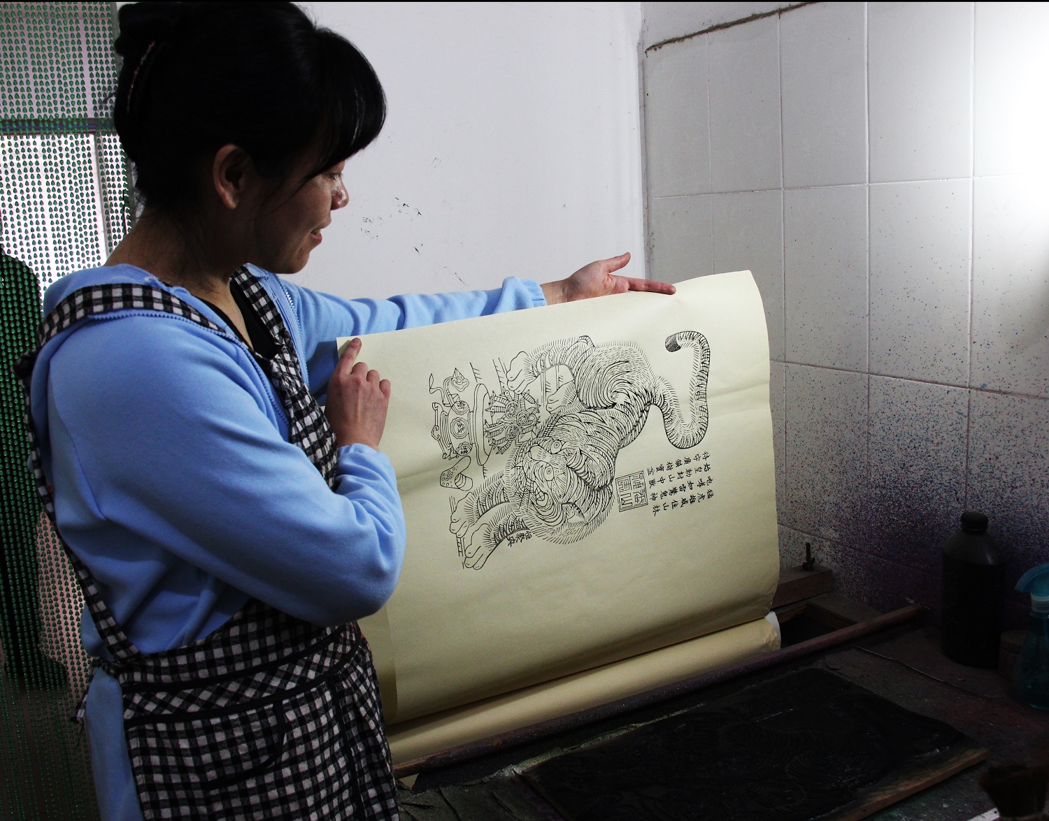 还有一次让武强年画技艺扬名世界的经历,是辛艳君最为自豪的。“天津科技大学的一位教授找到我,希望刻印茶叶包装标识,参加一个在英国举办的世界级包装大赛,还派了学生全程录制我的创作过程。”大赛现场,辛艳君这位中国女艺人的镜头一亮相,受到世界瞩目,印制的作品获得了银奖。