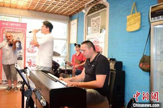 亚历山大·萨沙(右一)在周窝音乐小镇演出。(资料图)孟卫力 摄