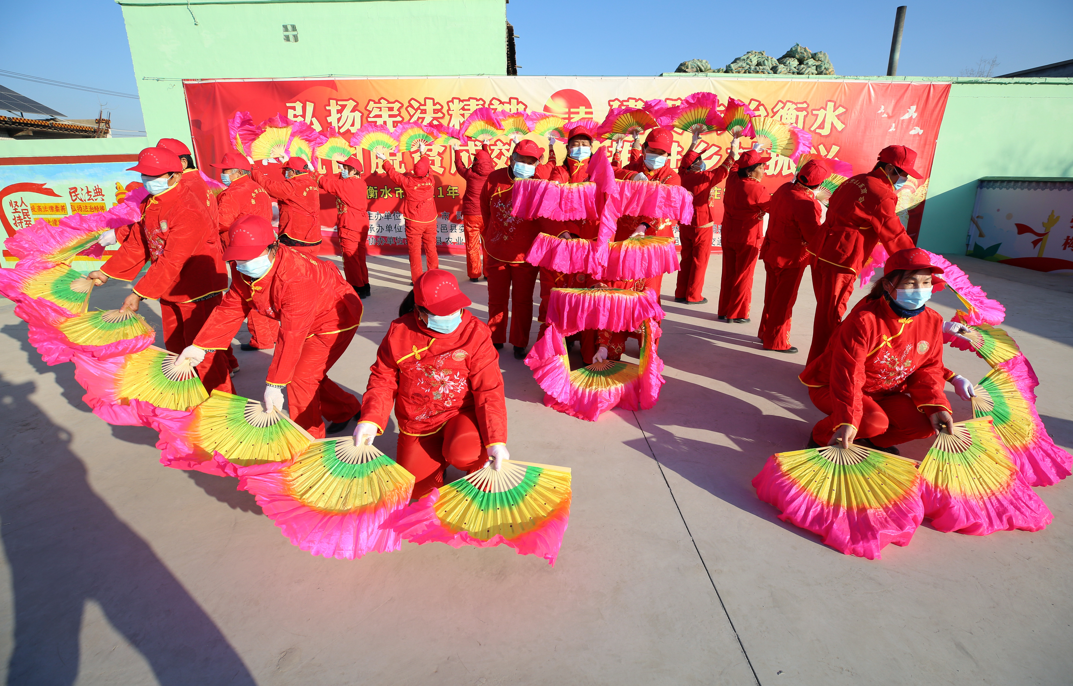 “咚咚锵、咚咚锵……”1月15日,武邑县韩庄镇张村秧歌队,正和着鼓点彩排舞蹈——“欢天喜地迎新春”。队长宋花普说:“党的好政策,让俺们过上了好日子。俺们要用这个舞蹈在县‘乡村大舞台’春节文艺擂台赛上,展现全体村民奔向乡村振兴的精气神!”