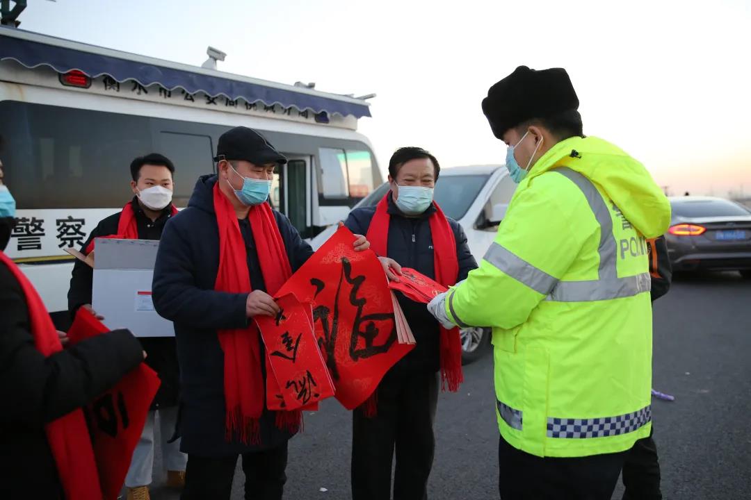 活动现场,书法家们挥毫泼墨,“一帆风顺年年好 万事如意步步高 ”“年年顺景则源广 岁岁平安福寿多”……一幅幅吉祥如意的春联、一张张刚劲有力的福字呈现在人们面前。来自区书法家协会的16名书法家共书写春联86副、福字198张。随即,他们组成慰问团队,带着墨香浓郁的春联、福字先后来到衡水火车站、汽车站和高速路口,把这份特殊的春节“礼物”赠送到每一名防疫人员手中。“非常感谢书法家们送来的春联和福字,我们会带着这些温暖与祝福,继续坚守岗位,奋战在抗疫一线,为衡水人民的健康保驾护航。”一线防疫人员纷纷表示。