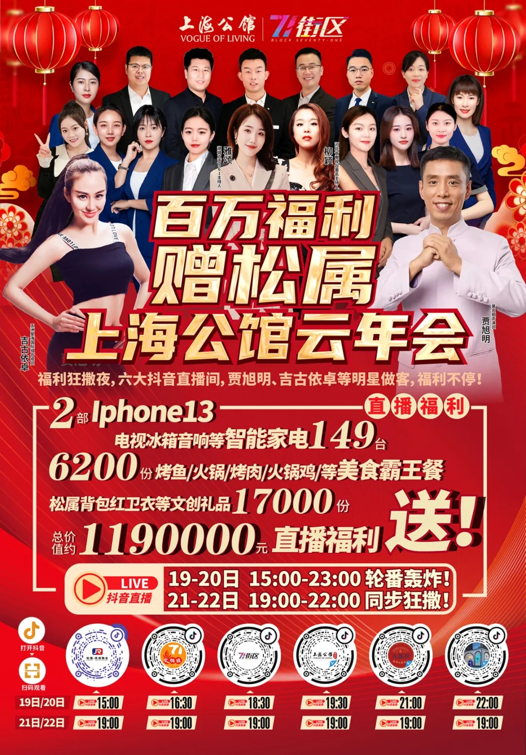 六大抖音直播间,贾旭明、吉古依卓等明星做客,福利不停!