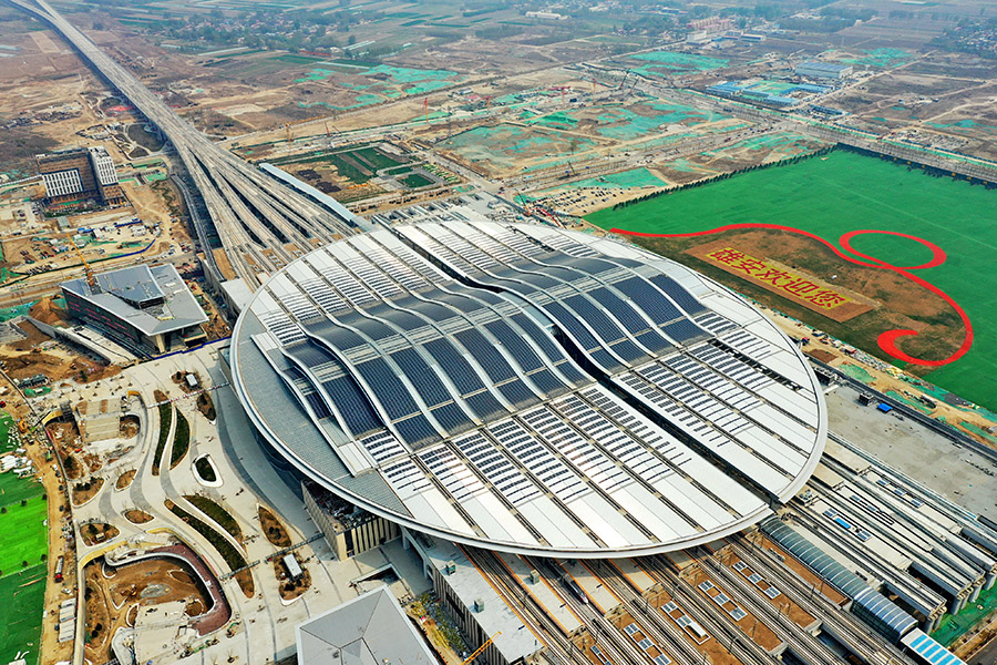 2021年4月8日拍摄的京雄城际铁路雄安站。新华社记者 牟宇摄
