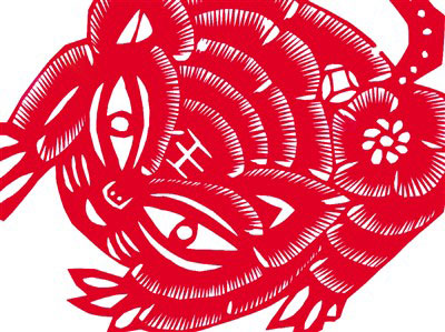 高密剪纸生肖虎,为民间艺人随心所剪,造型简约率真,有虎猫同型之感。虎的面部造型为剪纸艺人着意刻画的细节。面部多为圆形,额头正中那清晰的“王”字,衬托出无比勇猛威严的气势。身上的旋纹幻化为牡丹等花卉造型,增添了更多吉祥喜气。