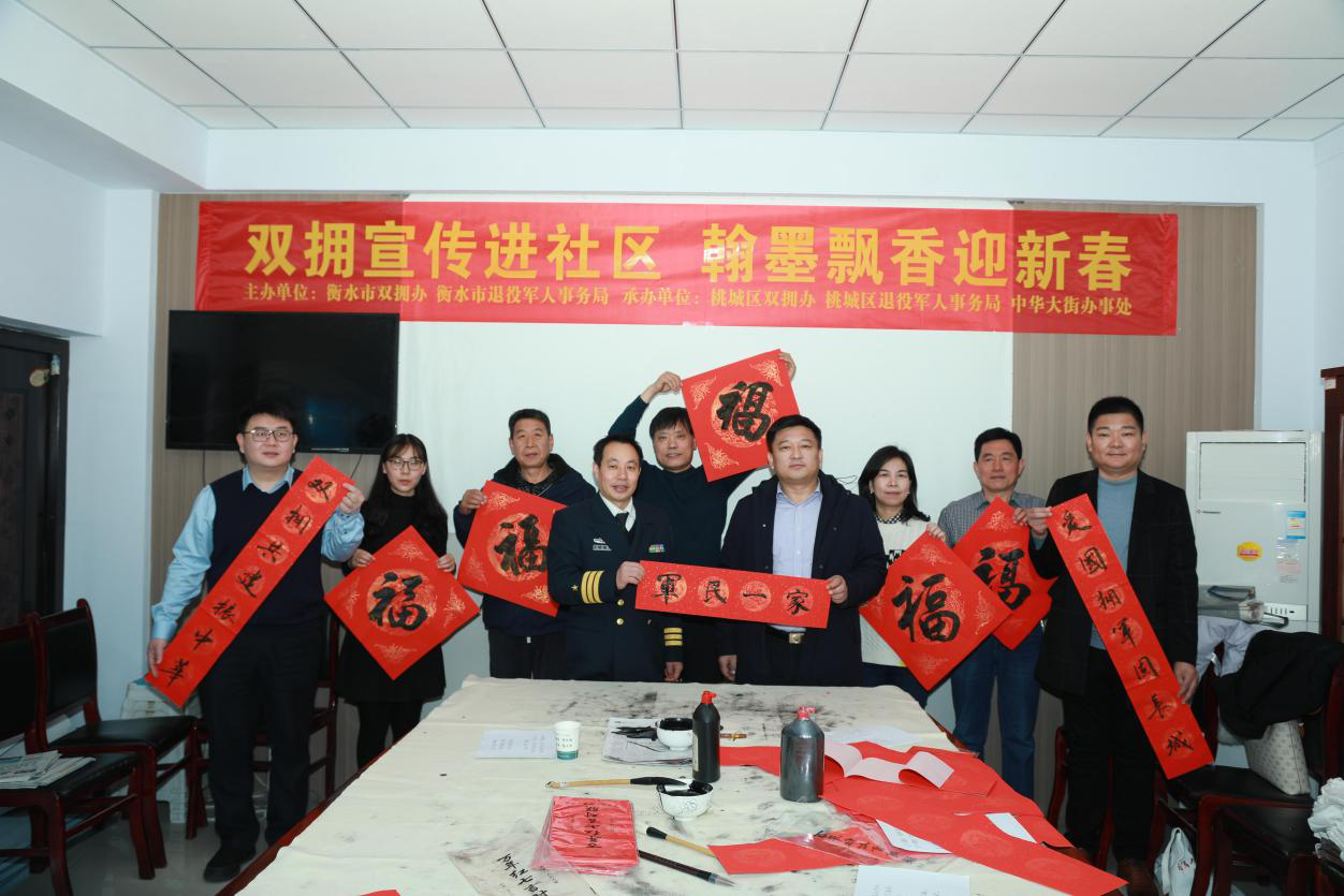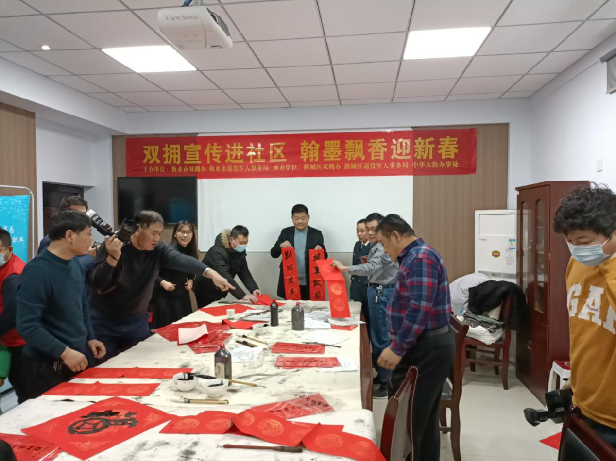 1月22日上午,桃城区丽景社区热闹非凡,衡水市“双拥宣传进社区 翰墨飘香迎新春”活动在这里举行。活动由衡水市双拥办、退役军人事务局主办,桃城区双拥办、退役军人事务局、中华大街街道办事处承办。